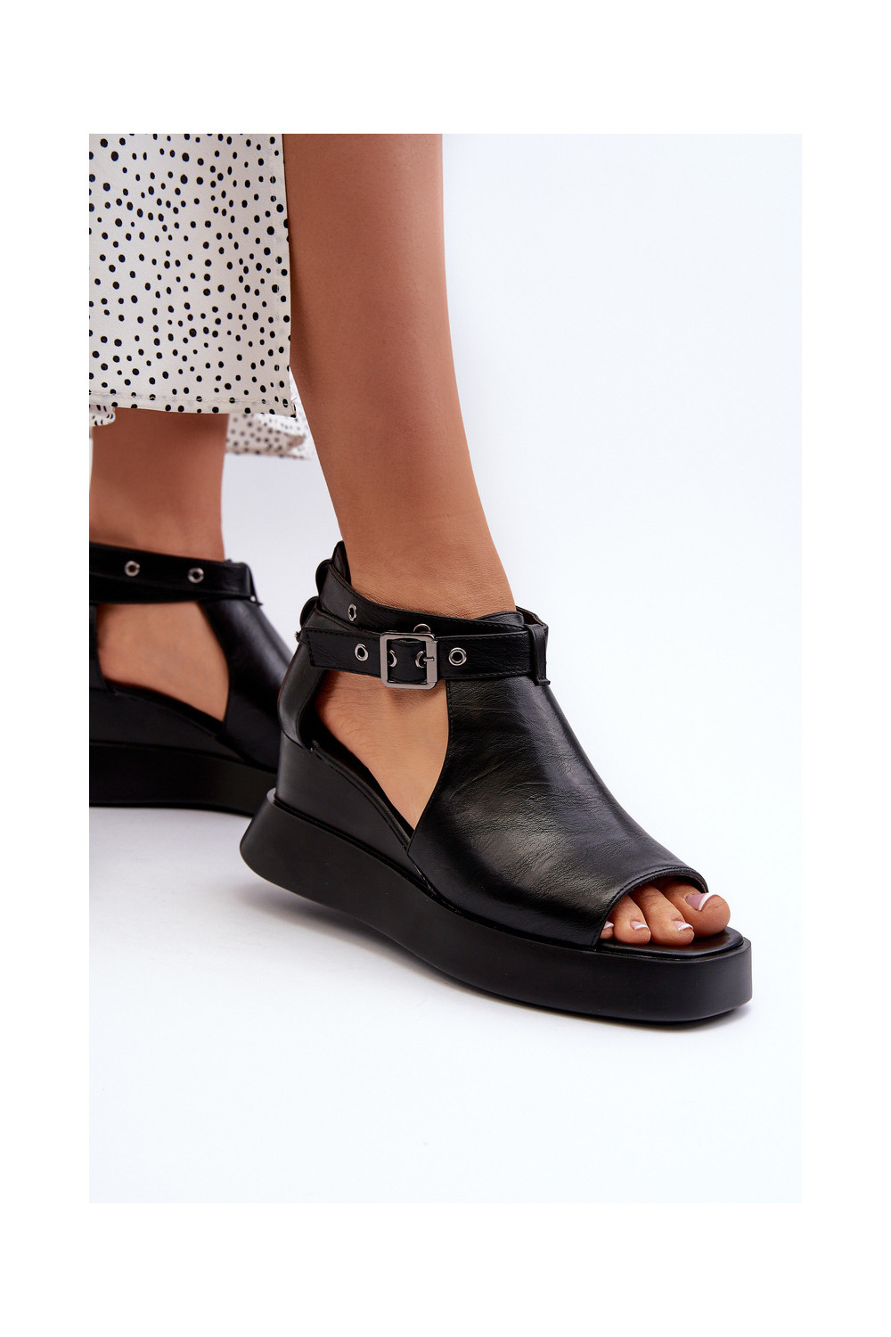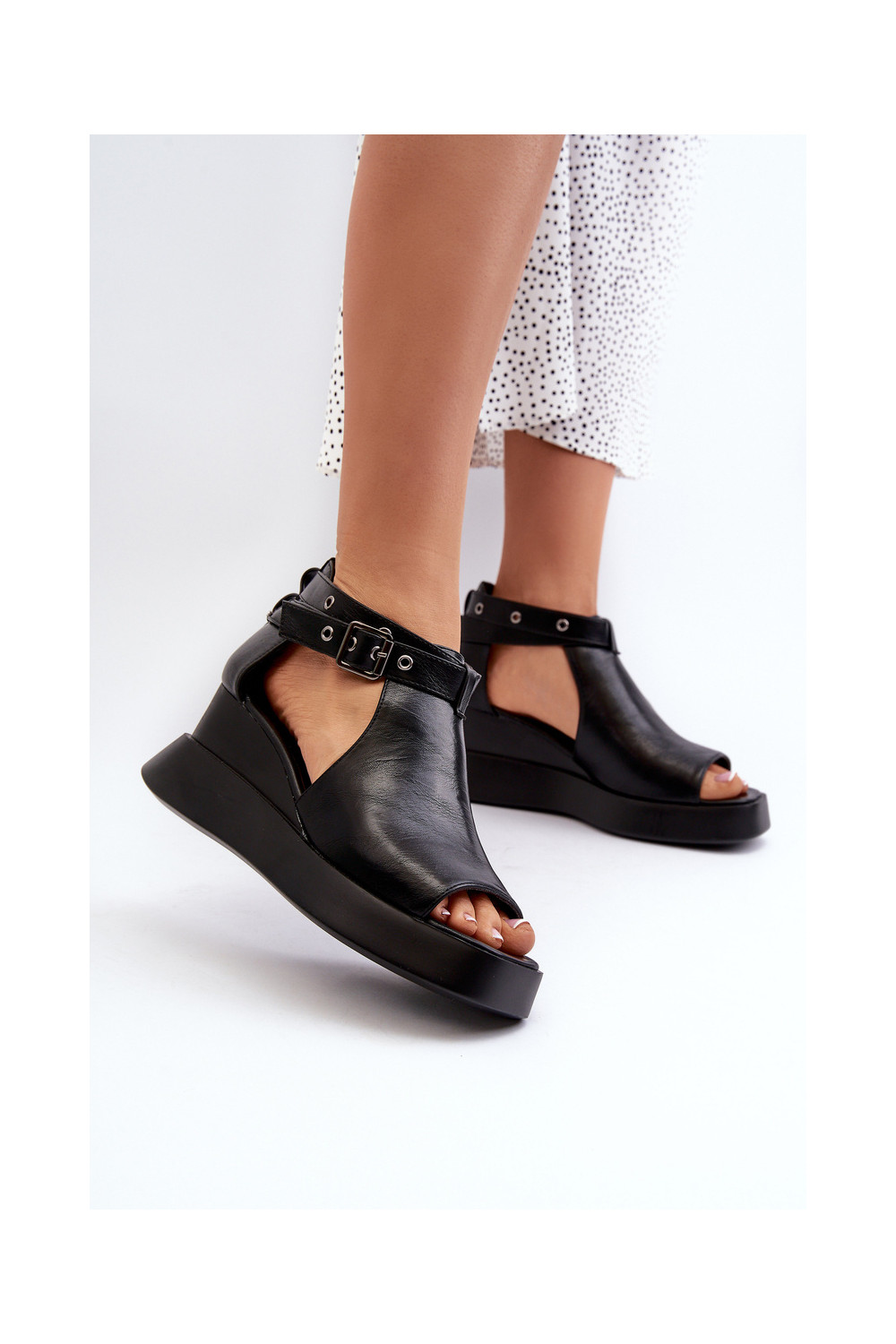 Moteriškos basutės su platforma I Koturnie iš eko odos Juodos spalvos Hloeli