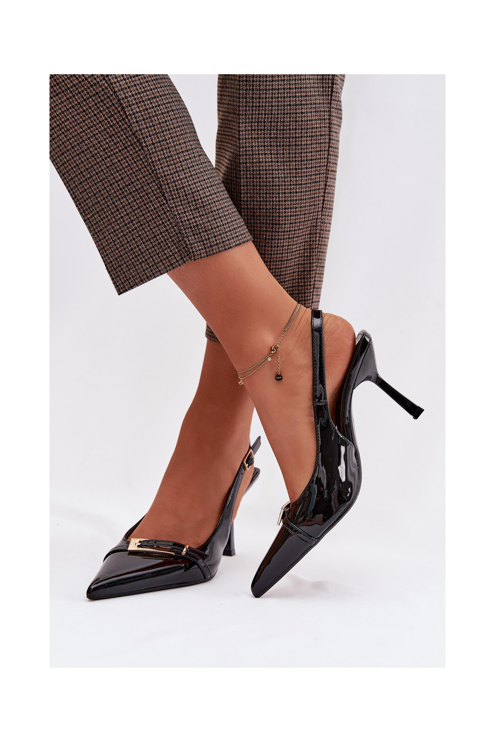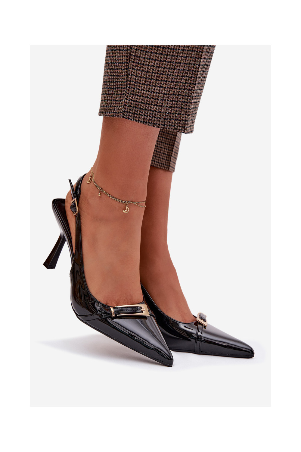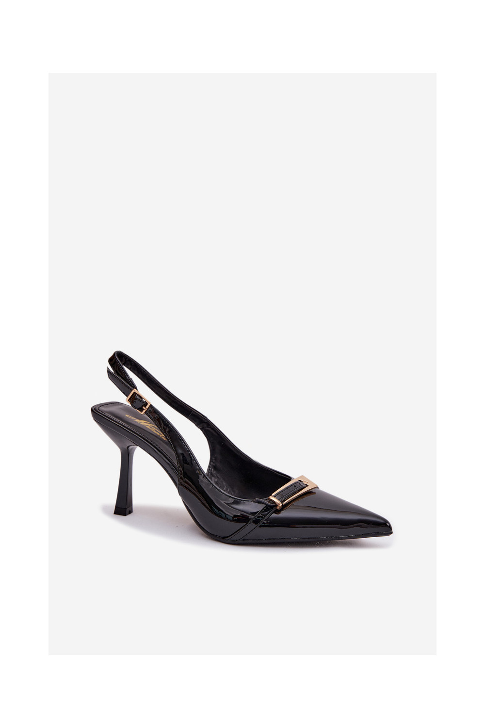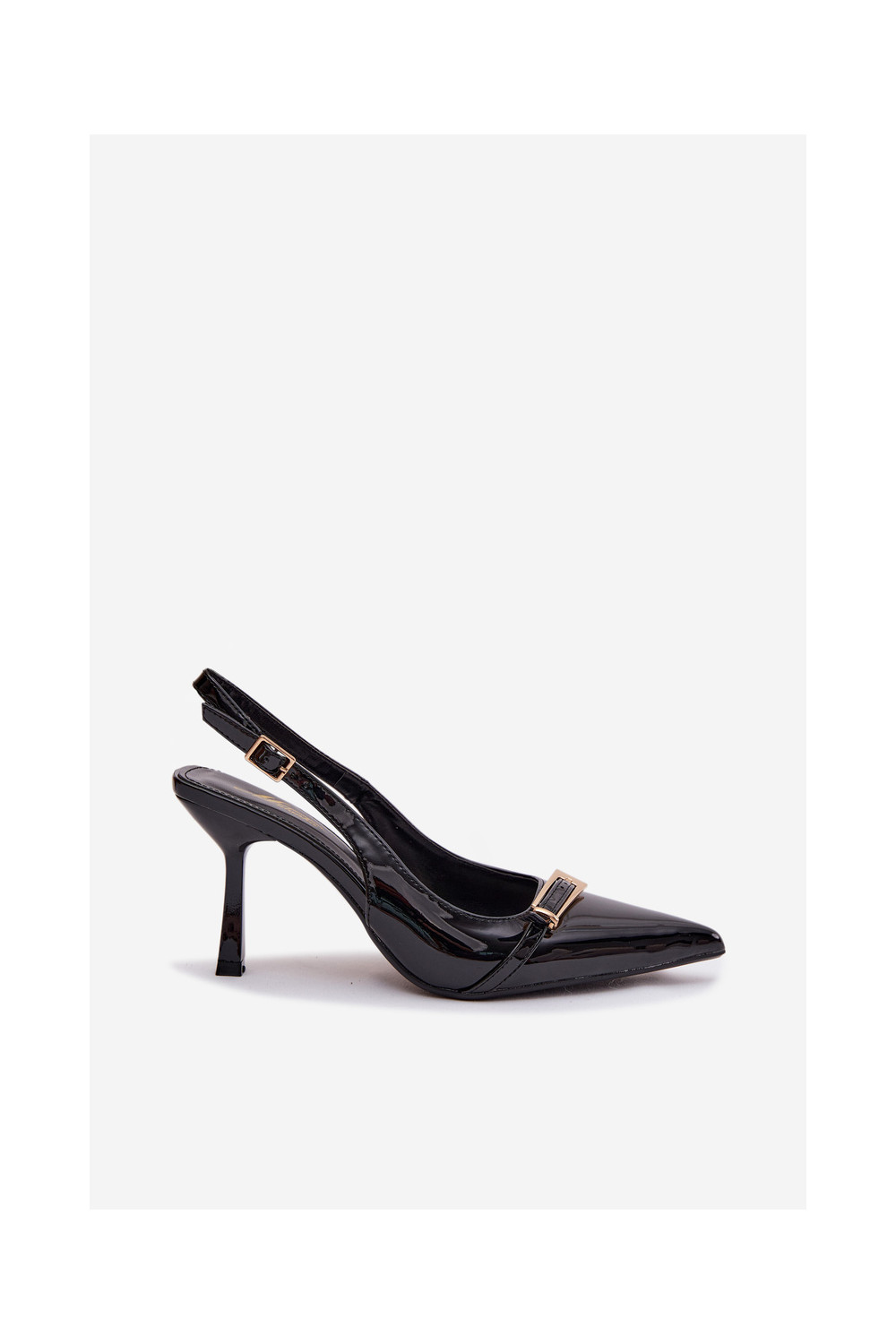 Lakuotos basutės moterims su plonais kulniukais su aukso spalvos sagtimis Juodos spalvos Bellivra