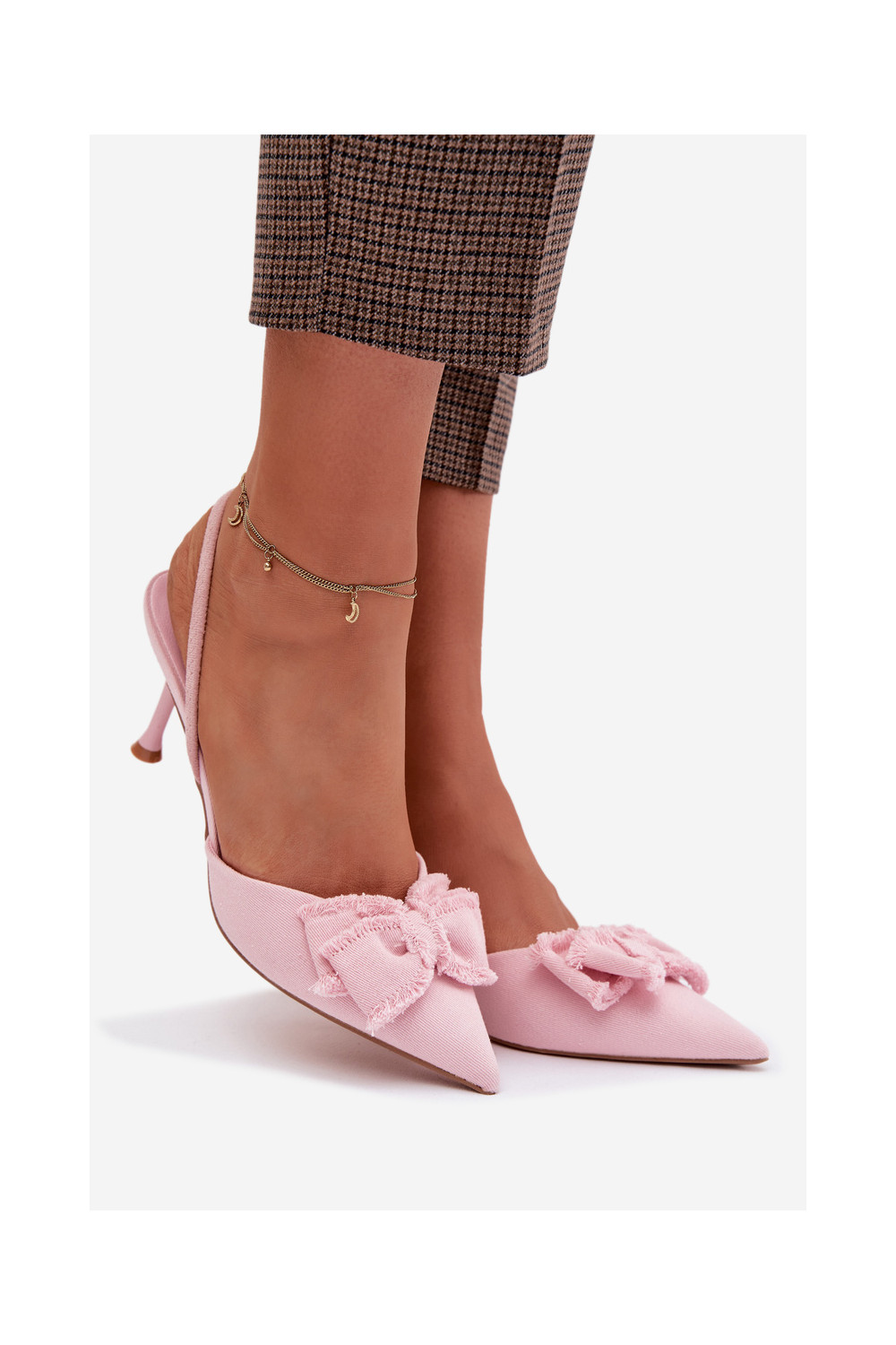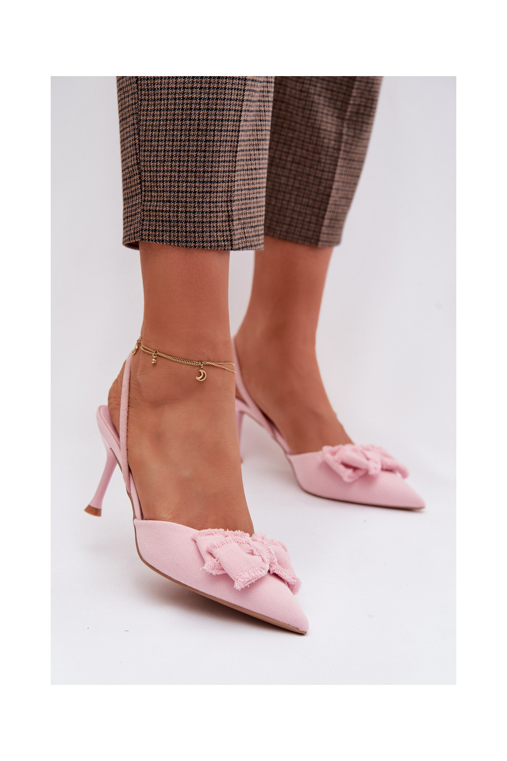 Moteriškos basutės su plonais kulniukais su kaspinais rožinės spalvos Hestia