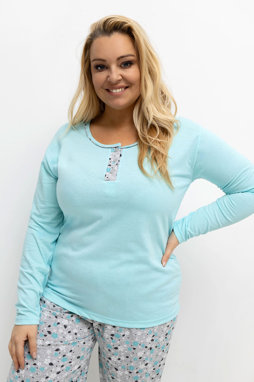 Pižamos matmenys XL dydžio, matuojant gulint: palaidinė: plotis pažastyse – 56 cm, rankovės ilgis – 59 cm, bendras ilgis – 69 cm, apačios plotis – 56 cm, kelnės: liemens plotis – 32 cm (gulint), liemens plotis – 68 cm (ištemptos), klubų plotis – 56 cm, bendras ilgis – 101 cm.