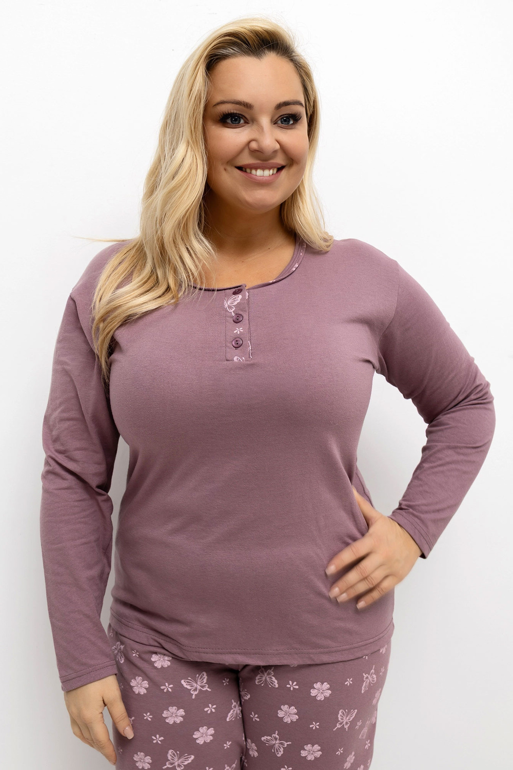 Pižamos matmenys XL dydžio, matuoti gulint: palaidinė: plotis po pažastimis – 57 cm, rankovės ilgis – 58 cm, bendras ilgis – 69 cm, apačios plotis – 56 cm, kelnės: juosmens plotis – 33 cm (gulint), juosmens plotis – 71 cm (ištempus), klubų plotis – 61 cm, bendras ilgis – 96 cm.