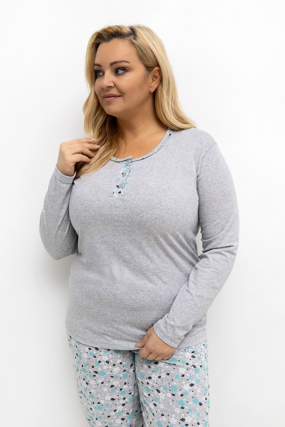 Pižamos išmatavimai XL dydžio, matuoti išskleistą: palaidinė: plotis po pažastimis - 56 cm, rankovės ilgis - 59 cm, bendras ilgis - 69 cm, apačios plotis - 56 cm, kelnės: juosmens plotis - 32 cm (išskleistą), juosmens plotis - 68 cm (ištemptos), klubų plotis - 56 cm, bendras ilgis - 101 cm.
