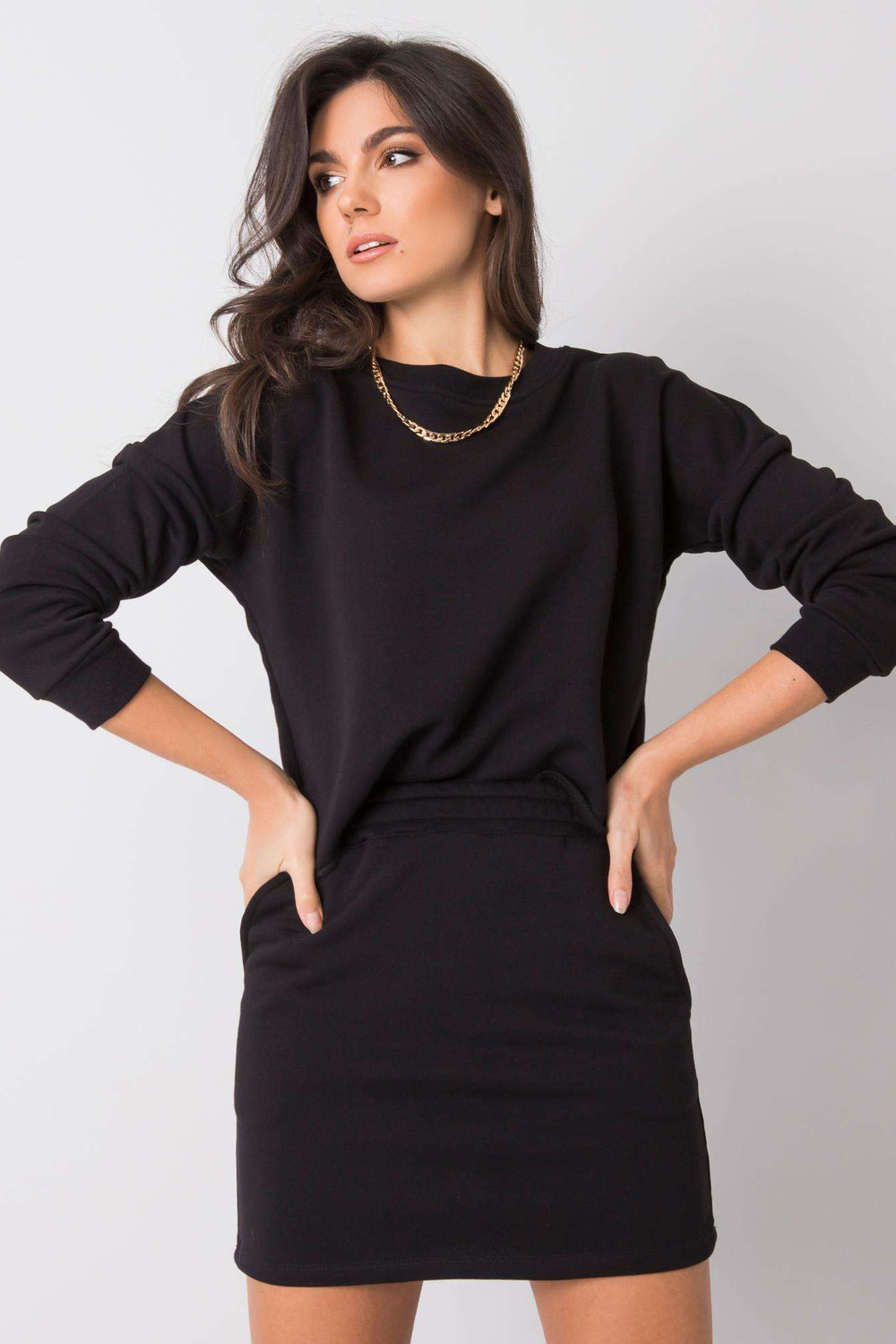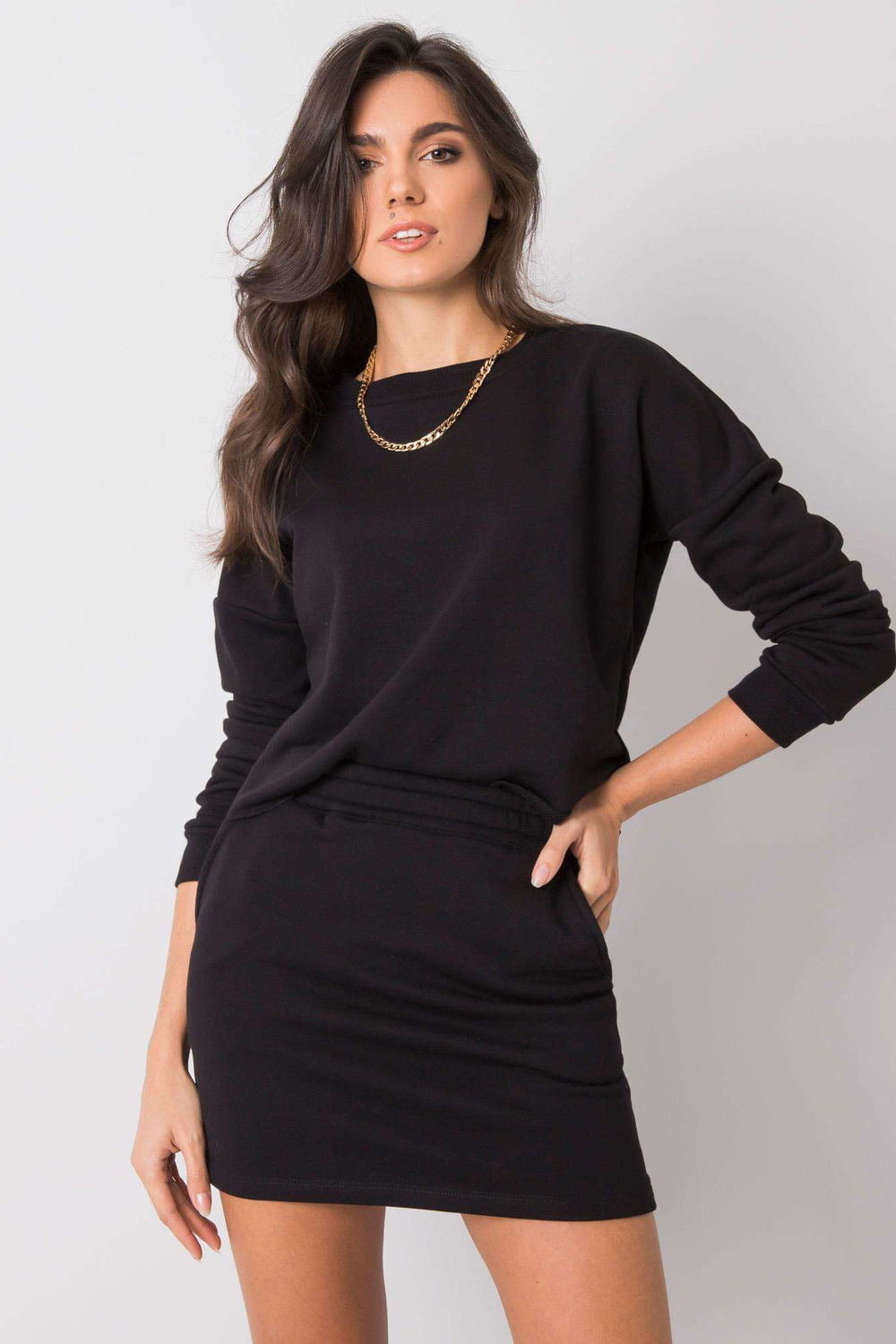 įeina: megztinis, sijonas