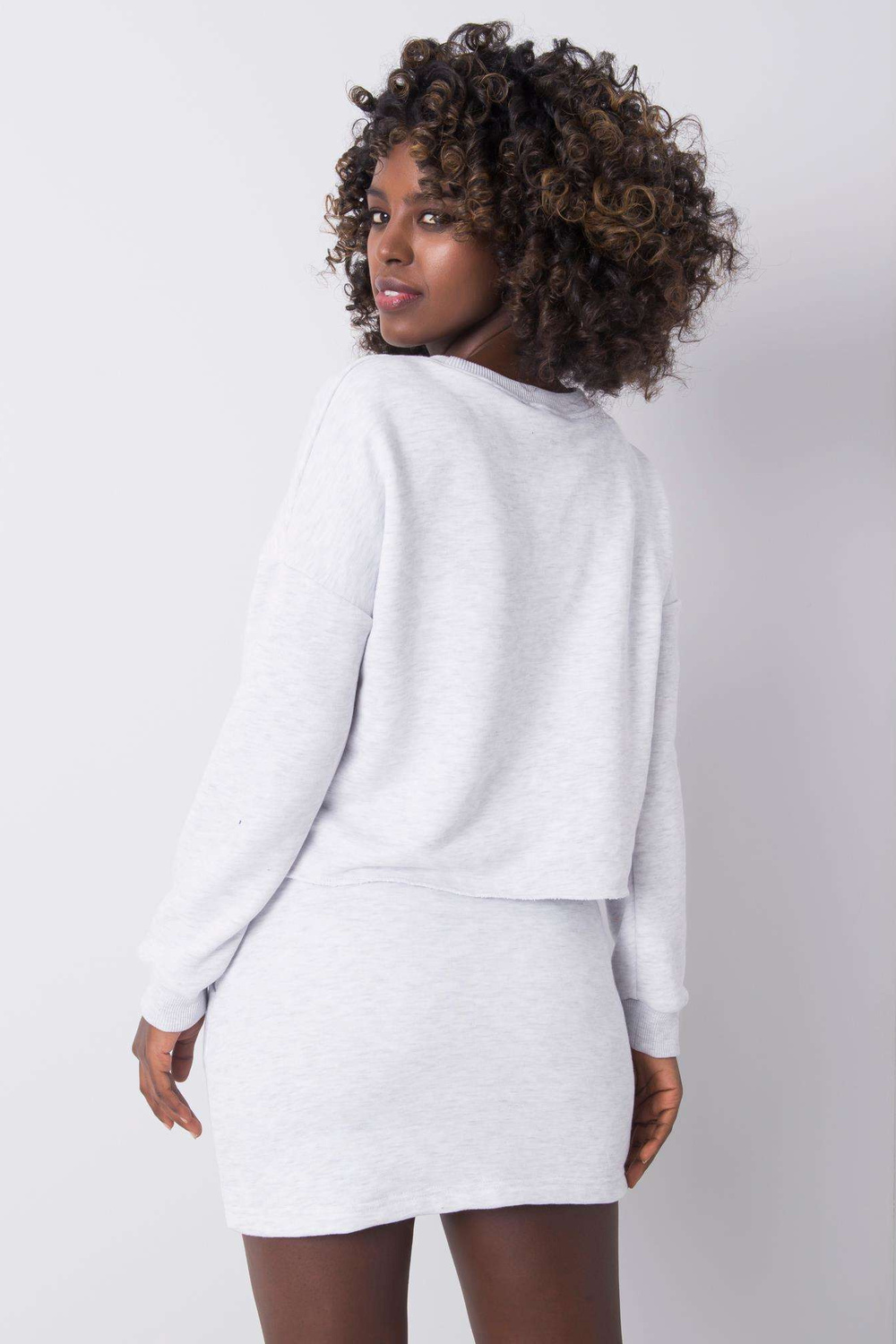 S dydžio rinkinio matmenys matuojami plokščiai: plotis po pažastimis - 53 cm, megztinio ilgis - 47 cm, rankovės ilgis - 53 cm, juosmens plotis - 32 cm , sijono ilgis - 40 cm