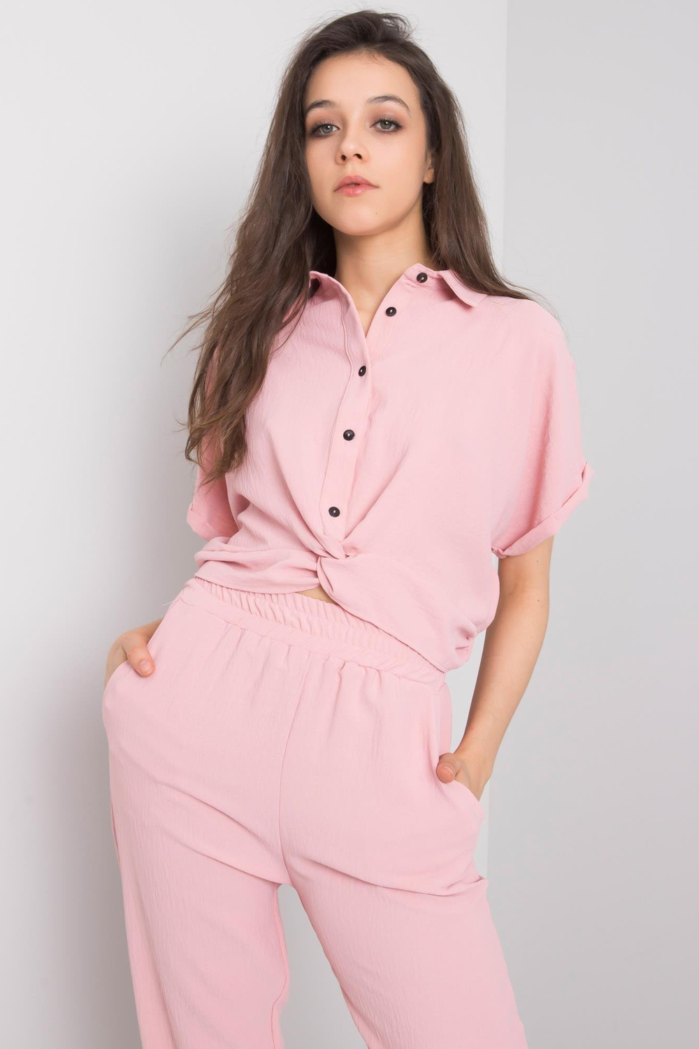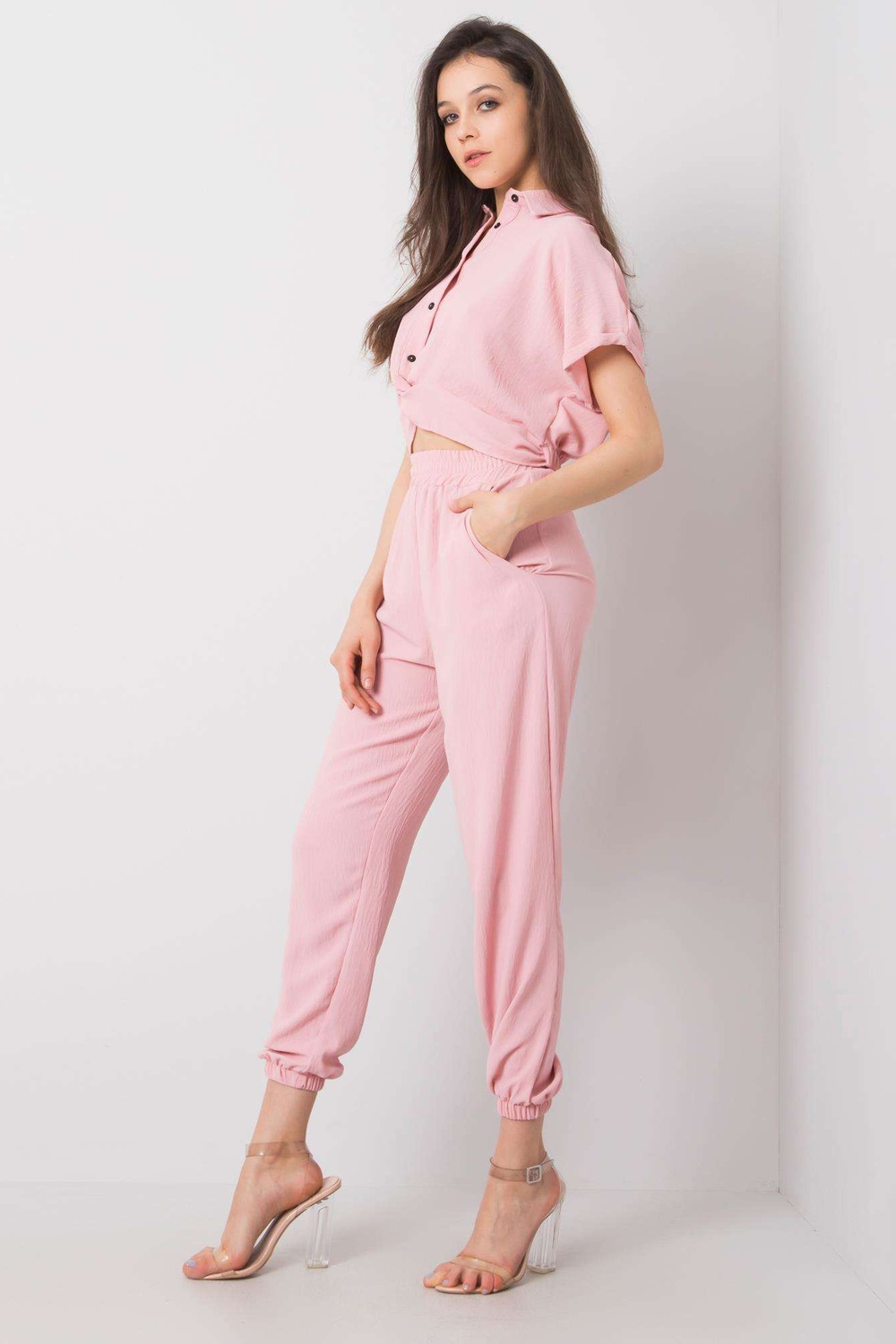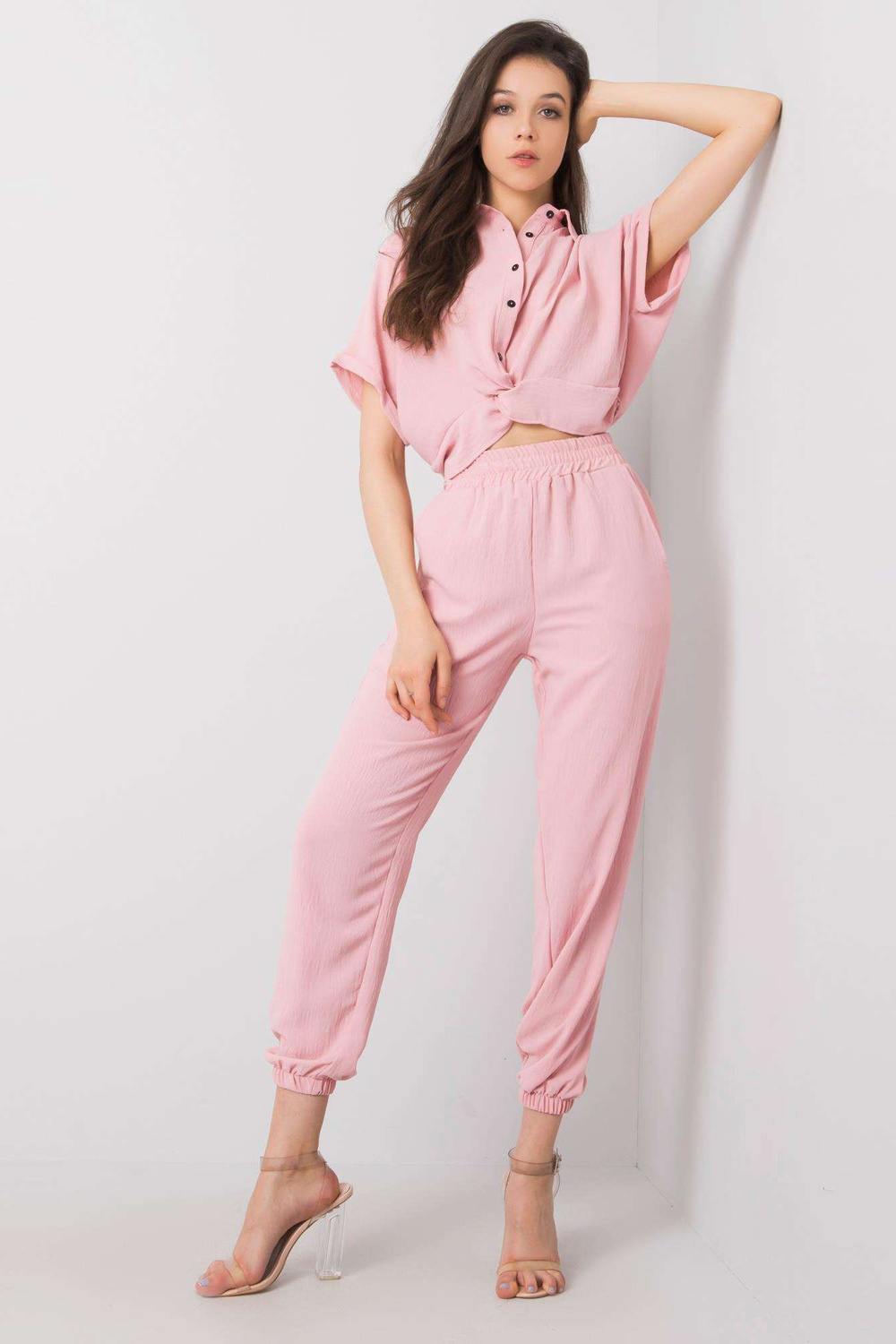 Pinkset Maire RUE PARIS. į komplektą įeina: kelnės, palaidinės medžiagasudėtis: 95% poliesteris, 5% elastanas skalbimo būdas: skalbimo mašina 30°C. Modelis dėvi S dydį. Modelio išmatavimai: aukštis 173 cm, krūtinė 78 cm, juosmuo 60 cm, klubai 90 cm. Matmenys