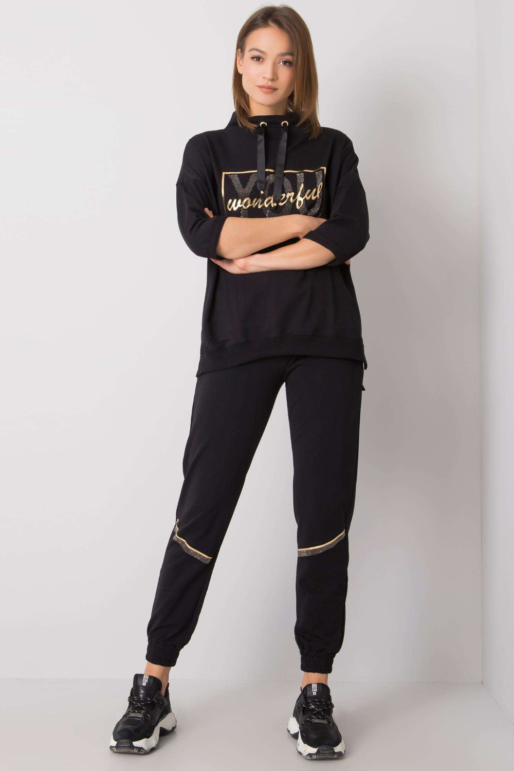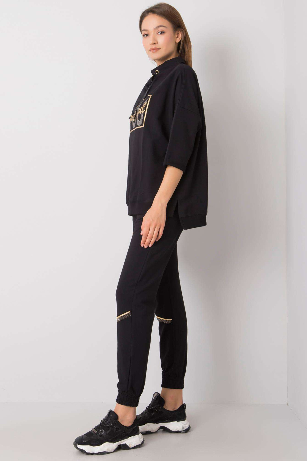 S/M dydžio rinkinio matmenys išmatuoti plokščiai: plotis po pažastimis - 66 cm, megztinio ilgis - 69 cm, rankovių ilgis - 41 cm, juosmens plotis - 37 cm, kelnių ilgis - 104 cm