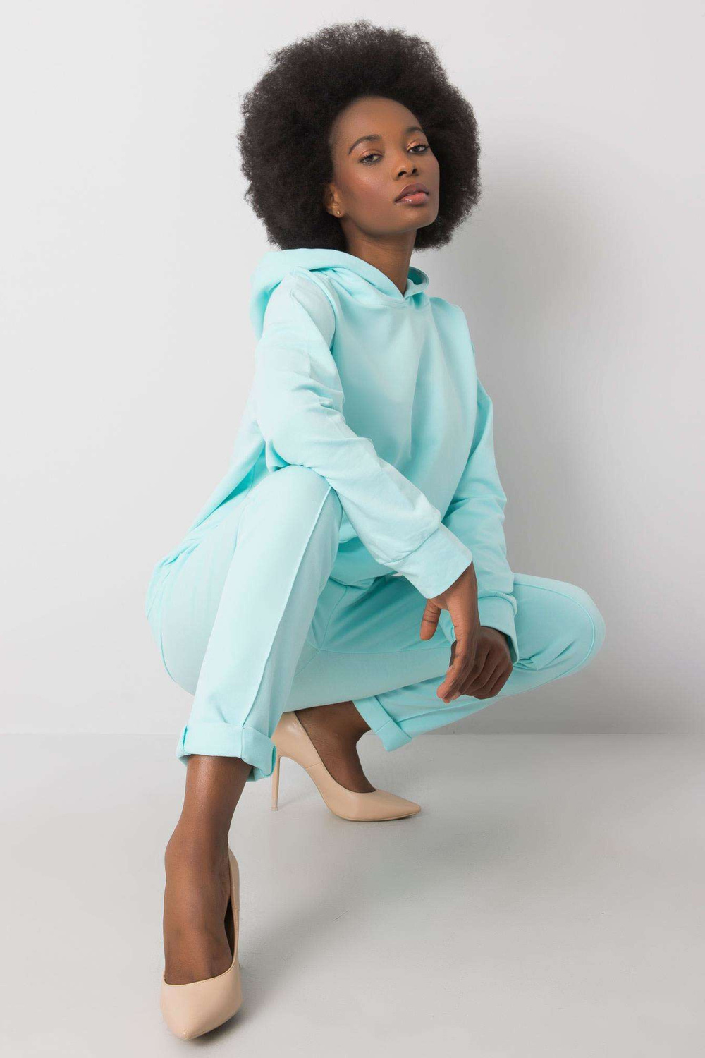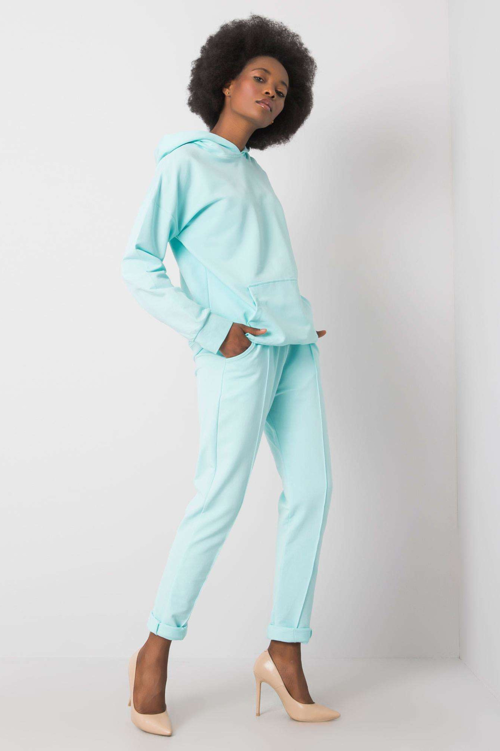 Mintset Marlow RUE PARIS. Į komplektaciją įeina: megztinis, kelnių medžiagasudėtis: 90% medvilnė, 10% elastanas skalbimo būdas: skalbimo mašina 30°C. Modelis dėvi S dydį. Modelio matmenys: aukštis 162 cm, krūtinė 80 cm, juosmuo 63 cm, klubai 80 cm. Di