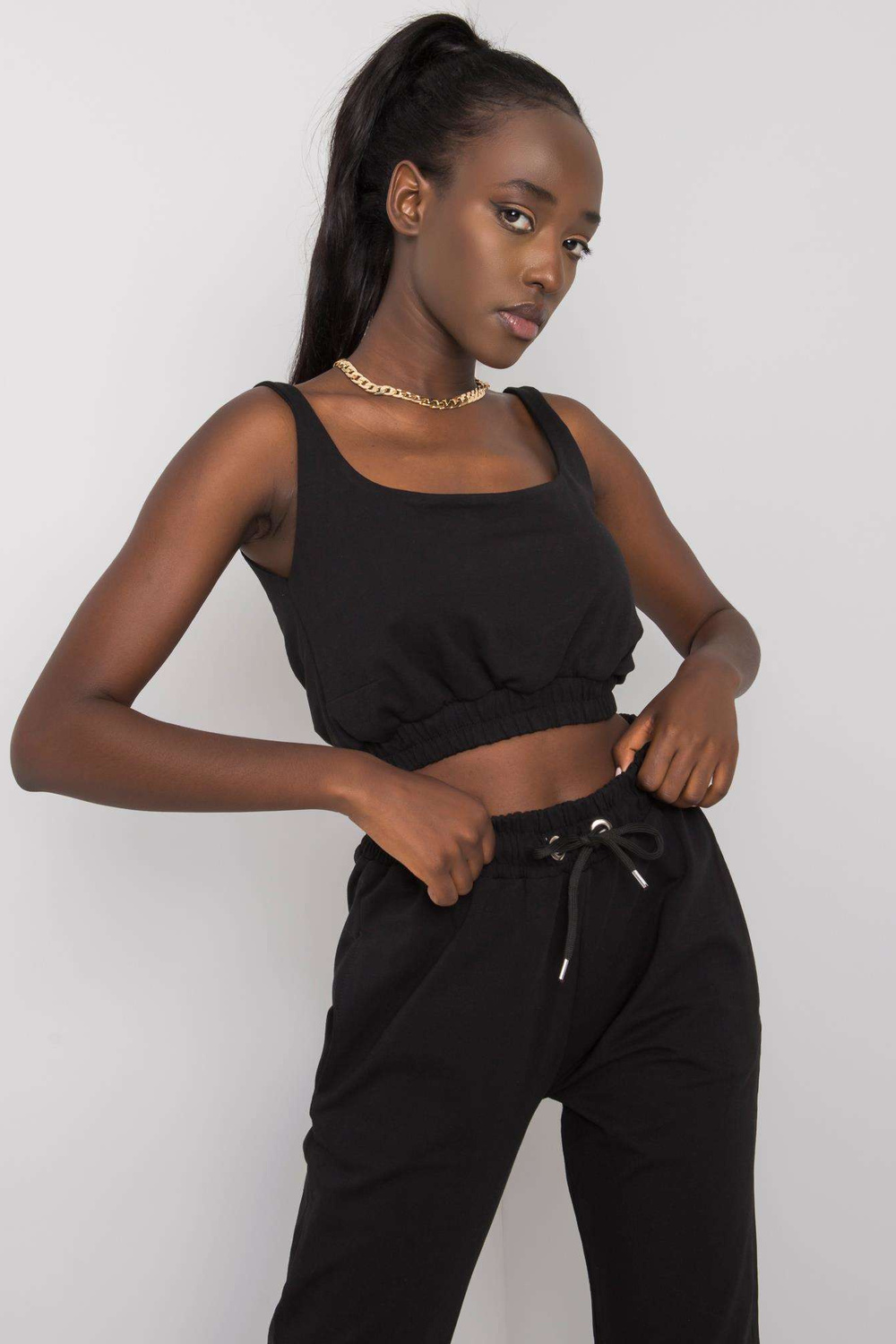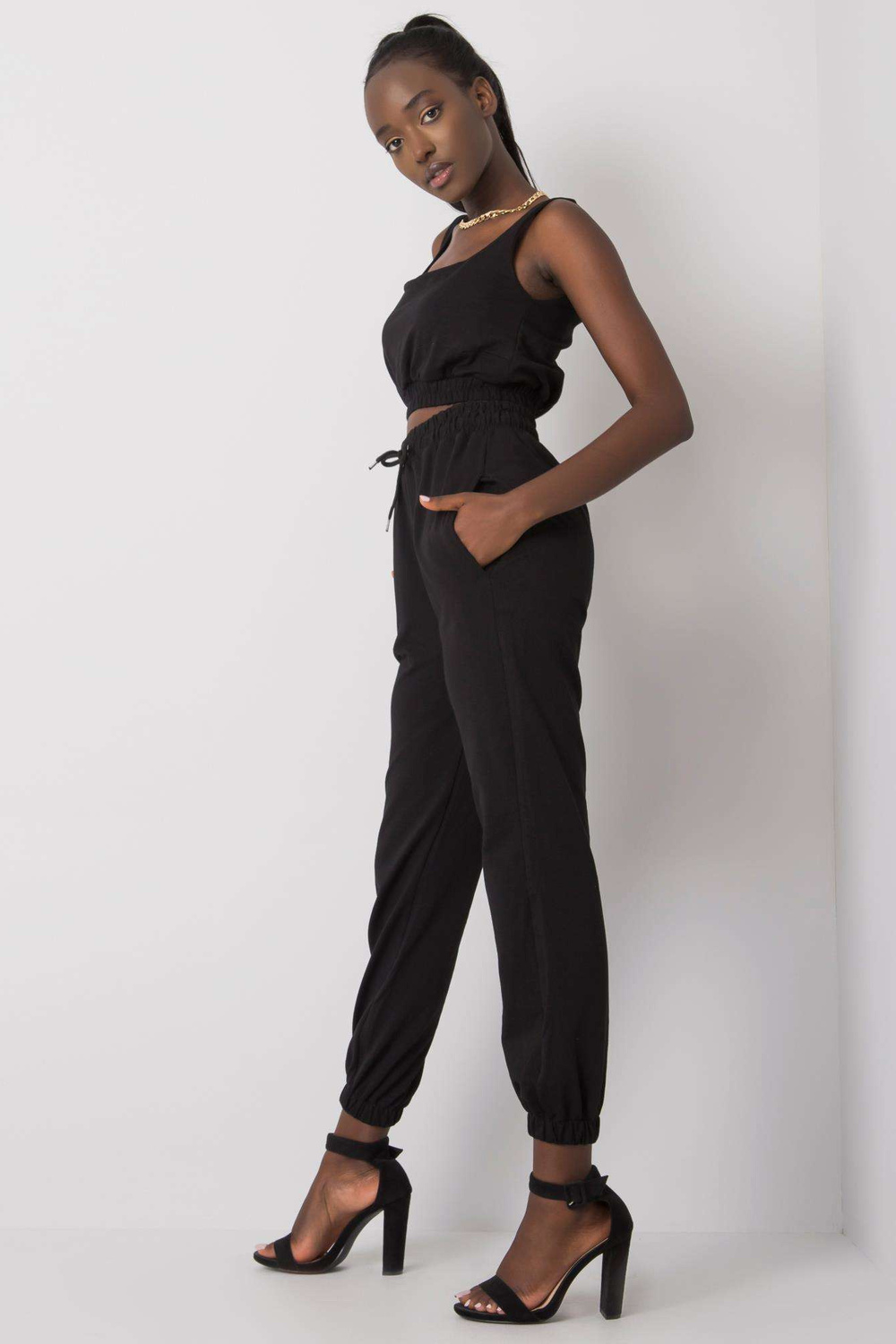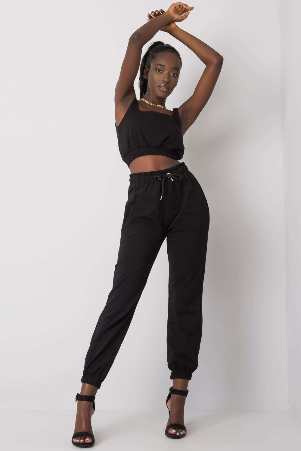 S dydžio rinkinio matmenys matuojami plokščiai: plotis po pažastimis - 40 cm, viršaus ilgis - 38 cm, juosmens plotis - 36 cm, kelnių ilgis - 93 cm< /p>
