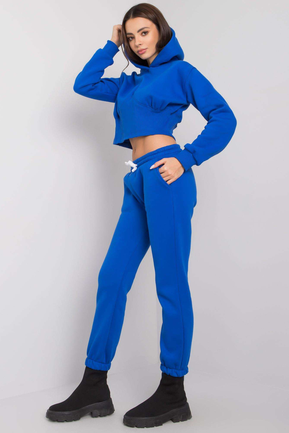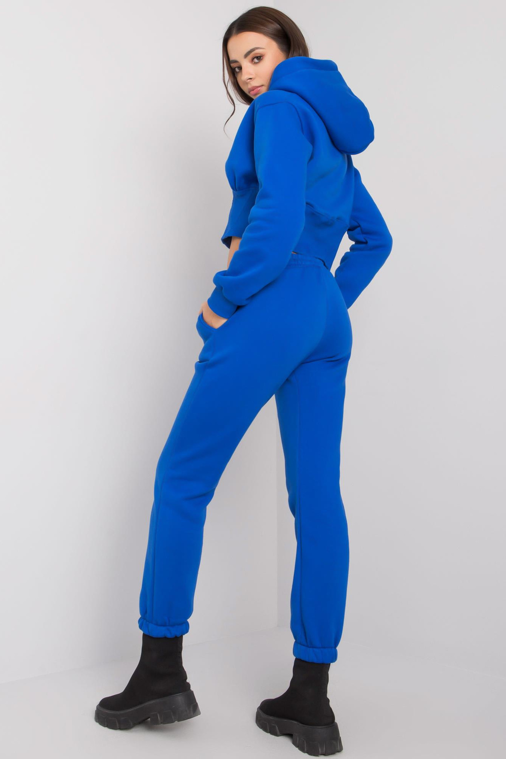 Komplekto matmenys S/M dydžiu matuojant plokščią: megztinio plotis po apačia rankos - 52 cm, rankovių ilgis - 61 cm, megztinio ilgis - 43 cm, kelnių juosmens plotis - 36 cm, kelnių ilgis - 91 cm