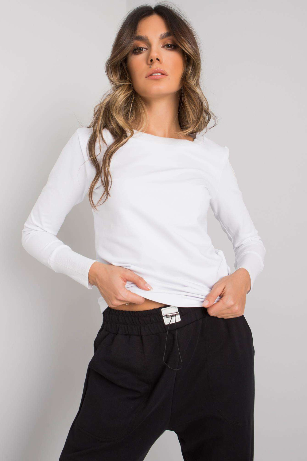 Modelis dėvi S/M dydį. Modelio matmenys: aukštis 175 cm, krūtinė 85 cm, juosmuo 65 cm, klubai 89 cm.