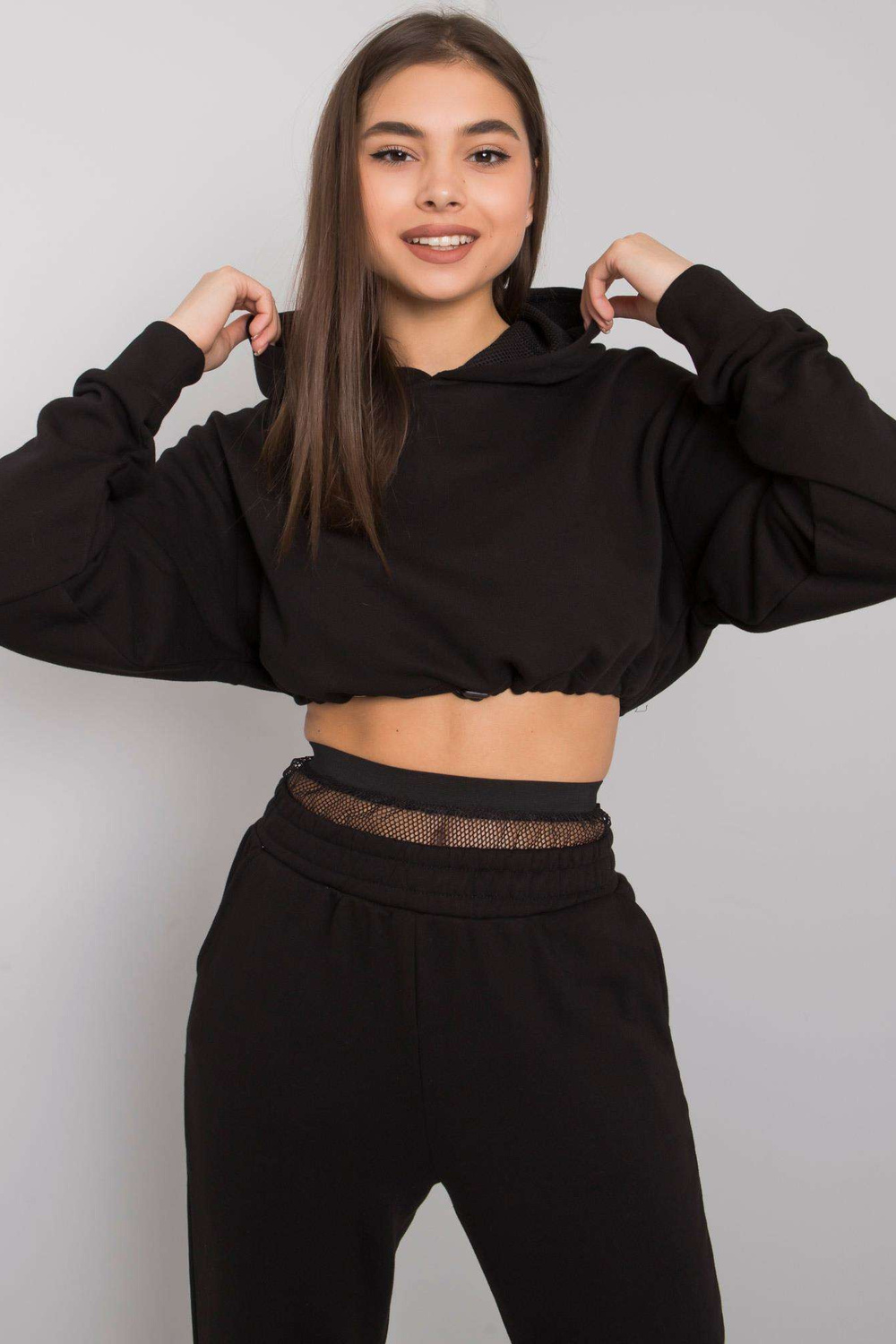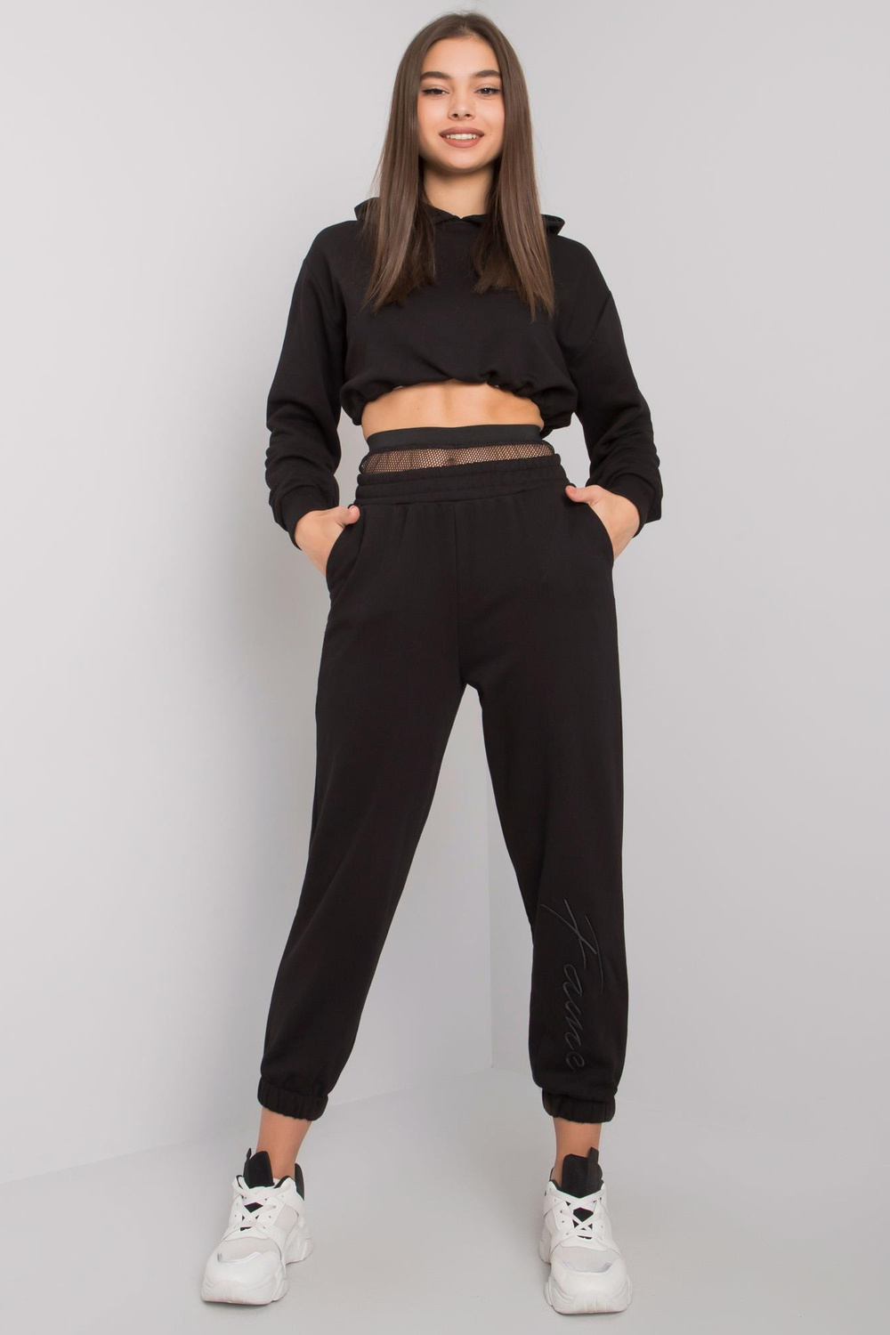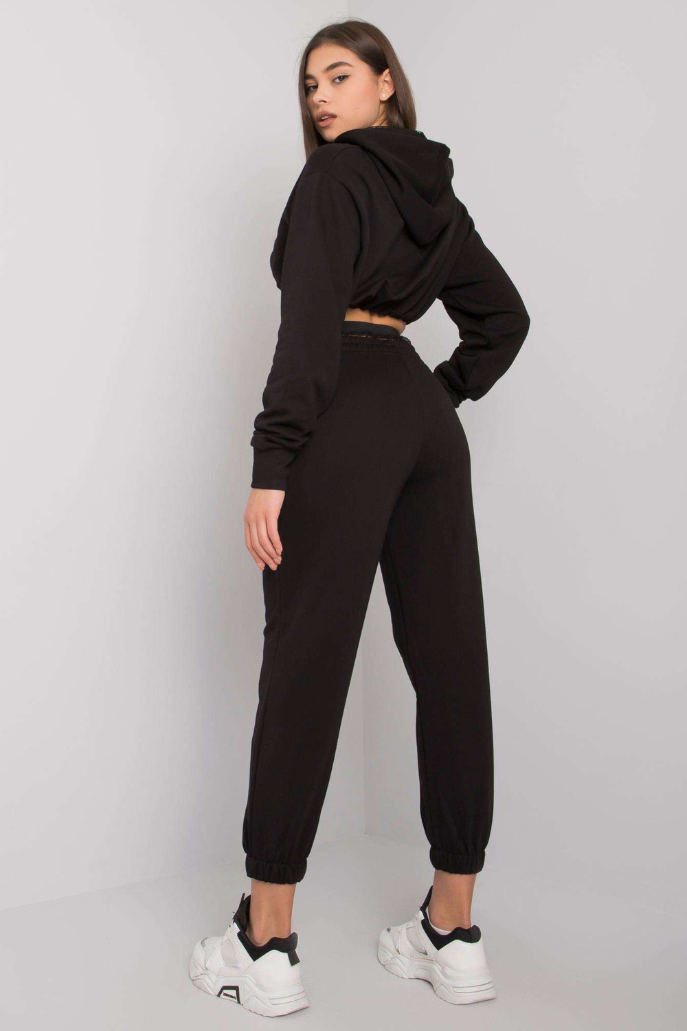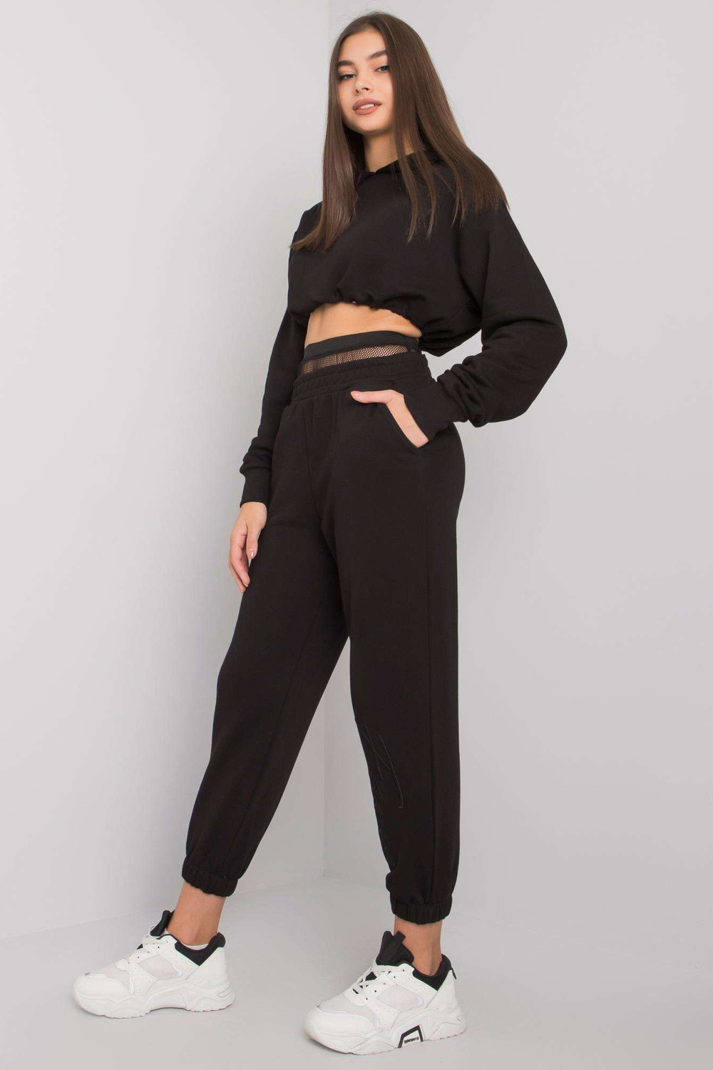 Juodas komplektas su Moline kelnėmis. Į komplektaciją įeina: megztinis, kelnės medžiagos sudėtis: 68% medvilnė, 32% poliesteris skalbimo būdas: skalbimo mašina 30°C. Modelis dėvi S dydį. Modelio išmatavimai: aukštis 172 cm, krūtinė 88 cm, juosmuo 61 cm, klubai 92 cm.