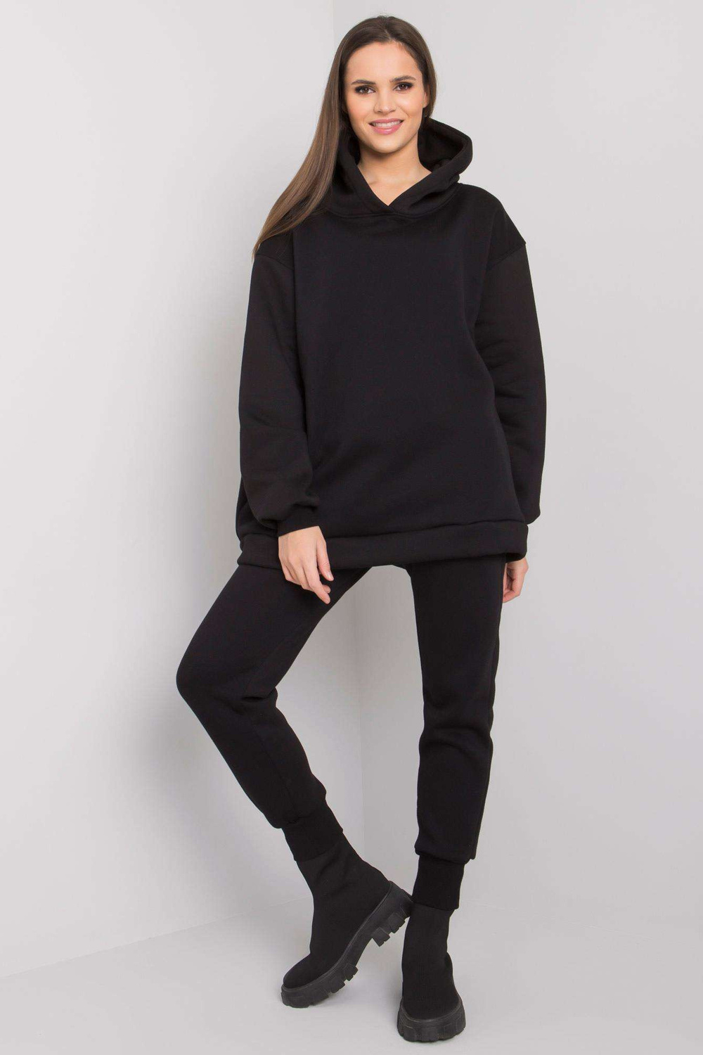 Juodo sportinio kostiumo dviejų dalių rinkinys Lucia. rinkinį sudaro: kelnės, megztinis medžiagos sudėtis: 90% medvilnė, 10% elastanas skalbimo būdas: skalbimas mašinoje 30°C Gaminio kodas: RV-KMPL-7372.26X dominuojantis raštas: be rašto Stilius: kasdienis, megztinis progai: kasdienis,