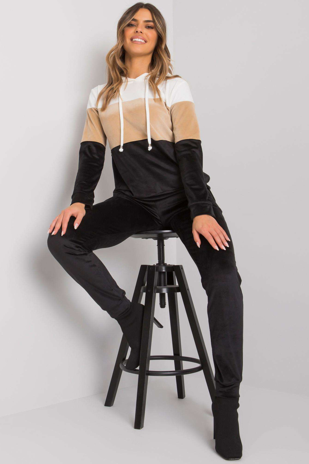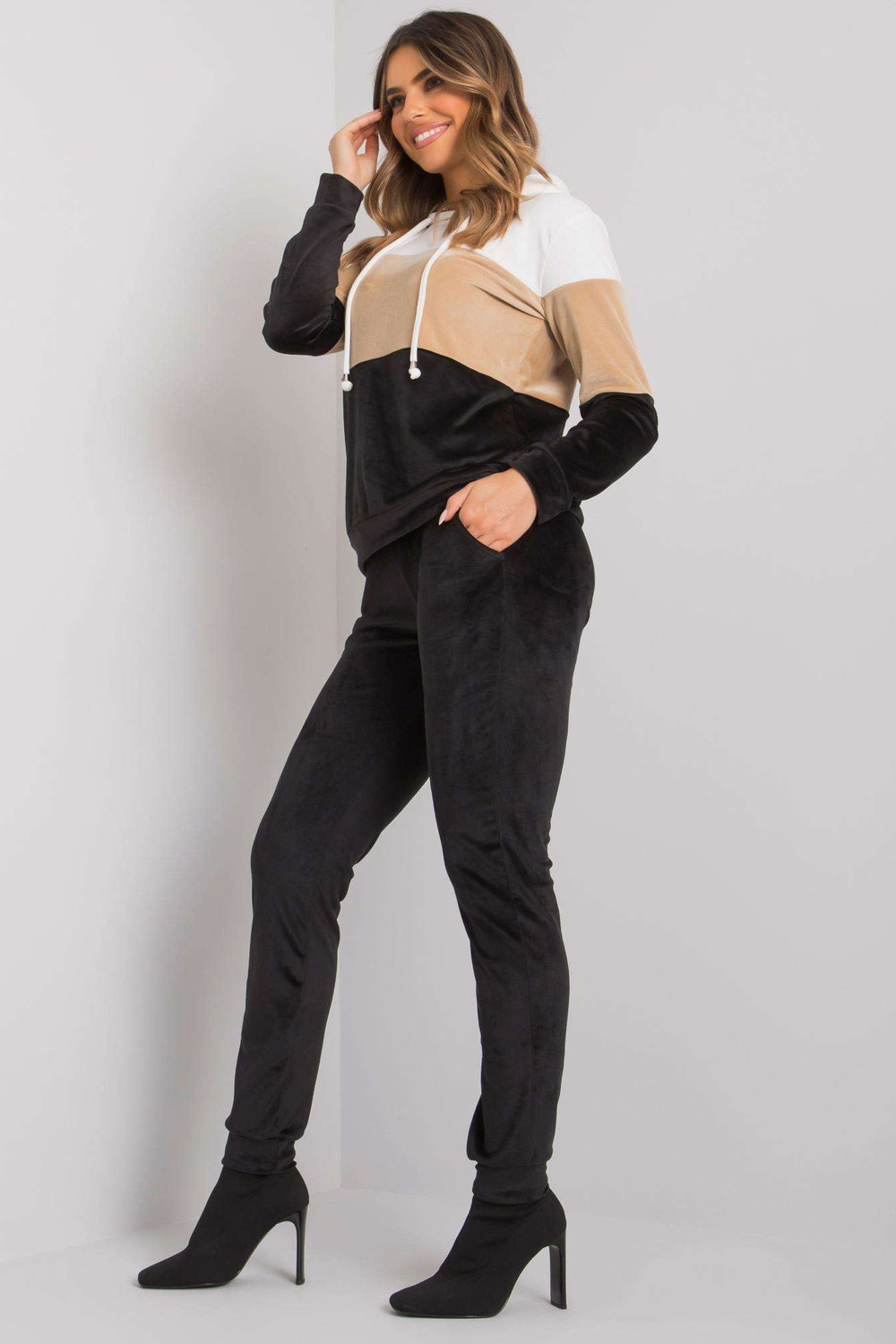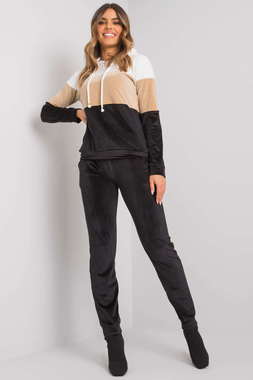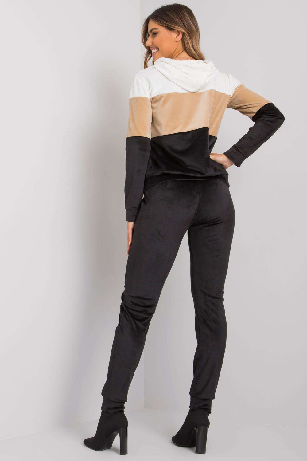 Juodo ir balto veliūro komplektas su kelnėmis Dilva RUE PARIS.