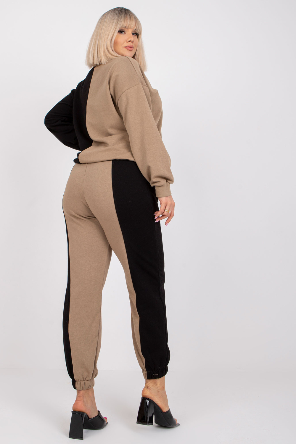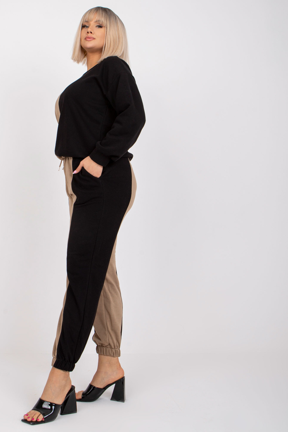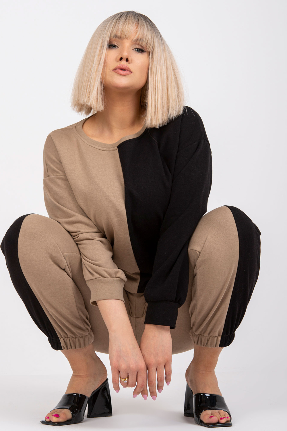 Tamsiai smėlio spalvos ir juodos spalvos sportinis kostiumas, plius dydis Amishi .