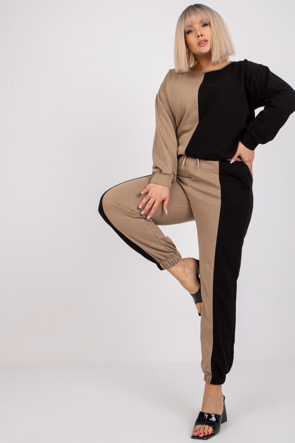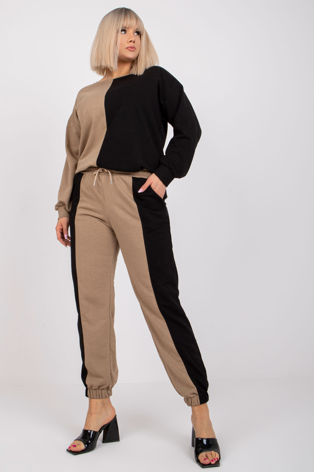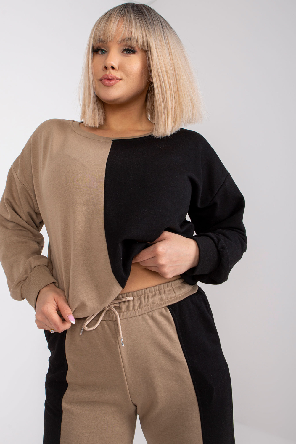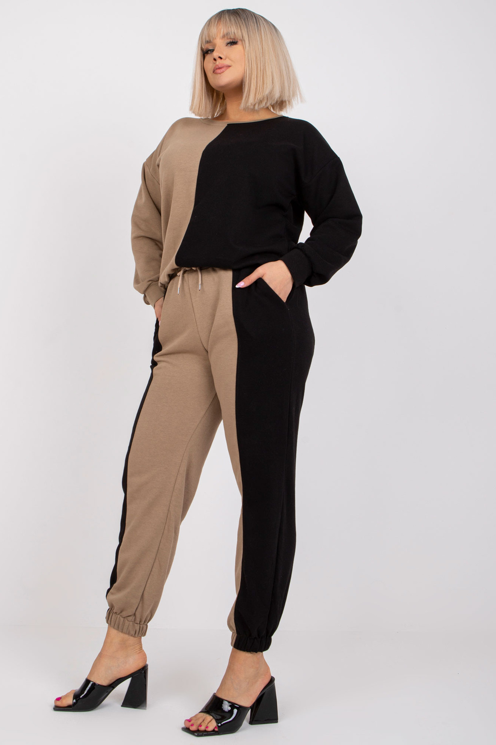 Tamsiai smėlio spalvos ir juodos spalvos sportinis kostiumas, plius dydis Amishi .