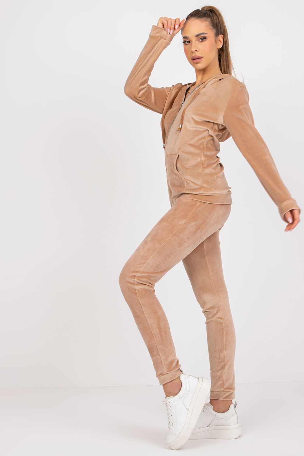 Beigetinis dviejų dalių veliūrinis rinkinys su kelnėmis Ilaria.