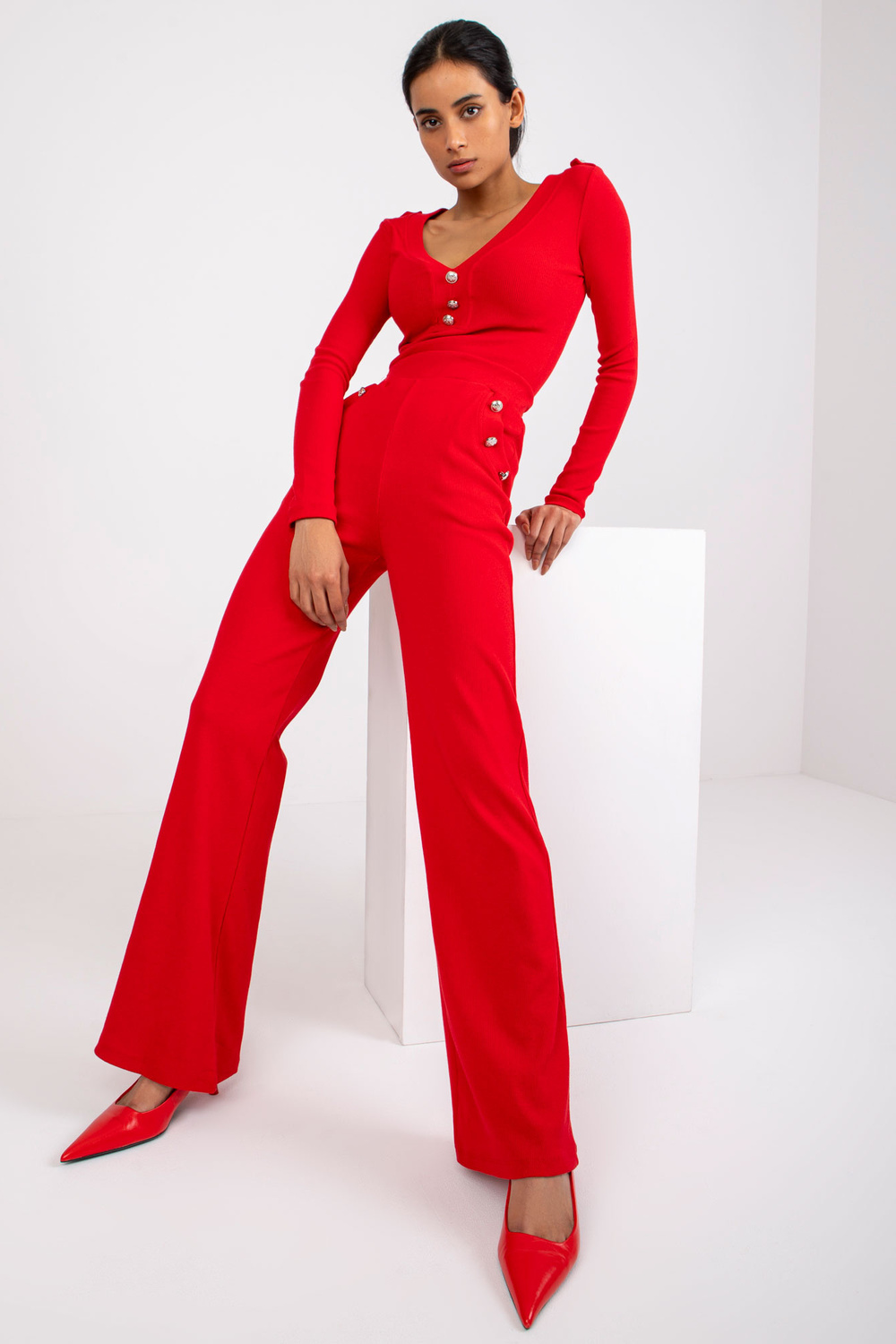 S dydžio rinkinio matmenys išmatuoti plokščiai: plotis po pažastimis - 37 cm, palaidinės ilgis - 62 cm, rankovės ilgis - 57 cm, juosmens plotis - 30 cm, kelnių ilgis - 110 cm .