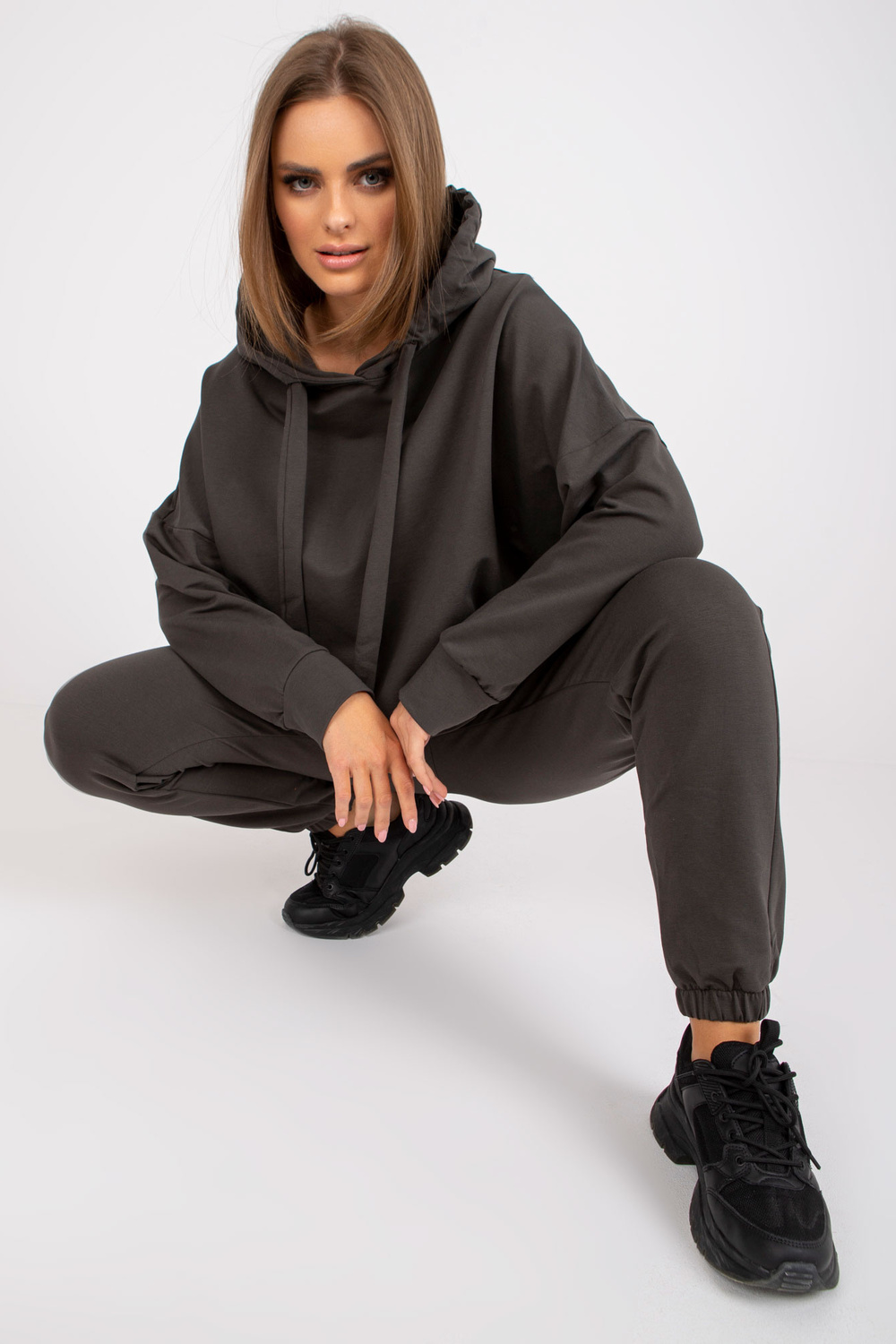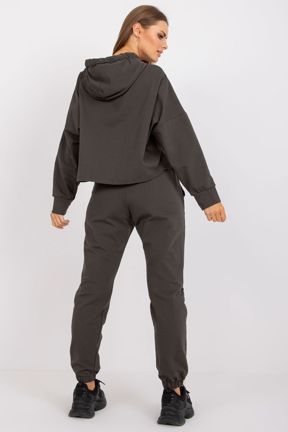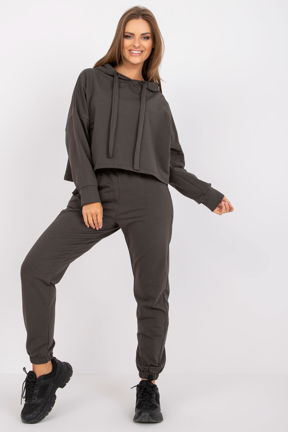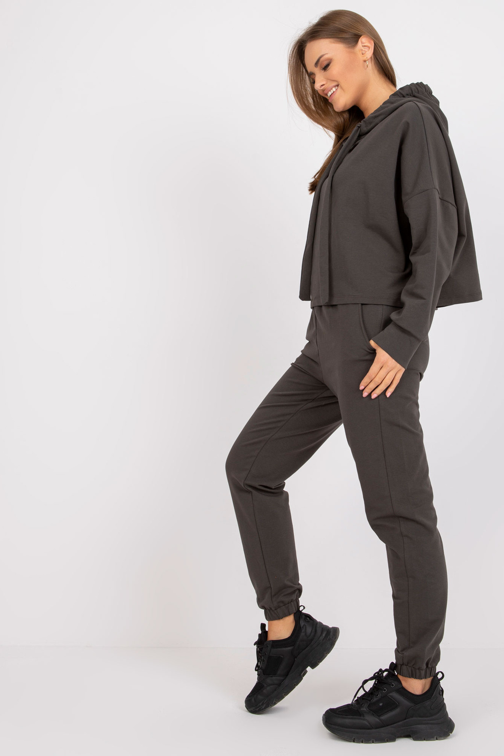 Pagrindinis chaki spalvos sportinio kostiumo komplektas su aukštu liemeniu kelnėmis