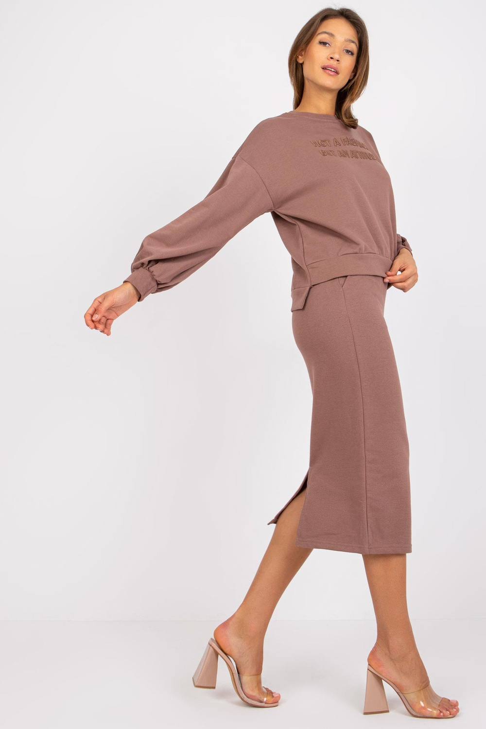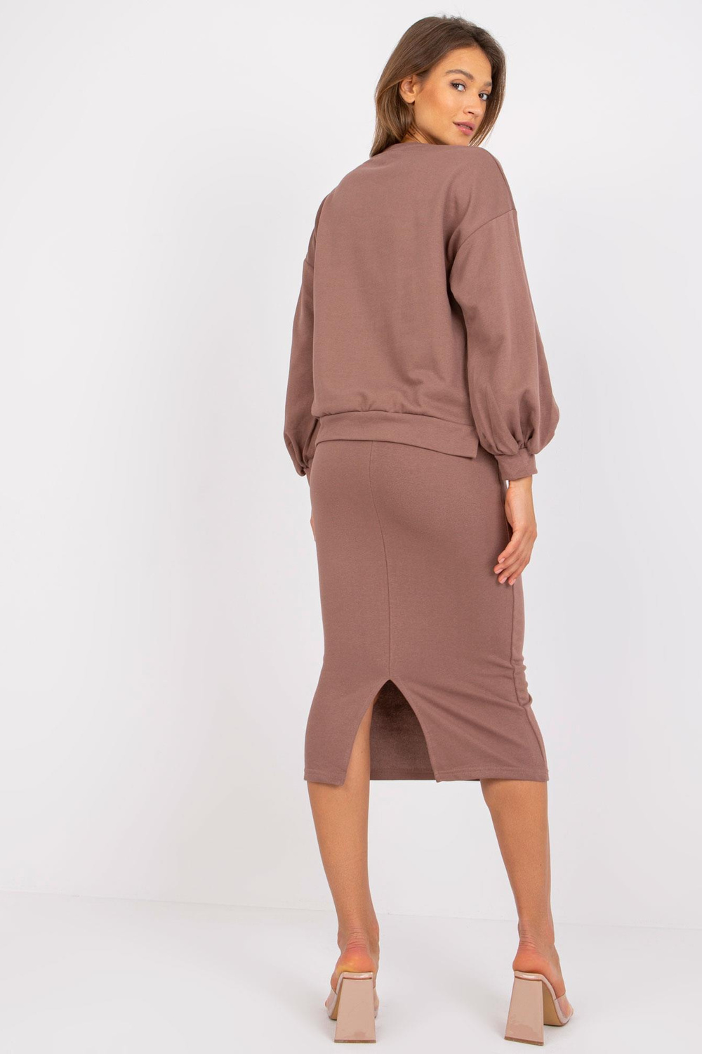Vieno dydžio rinkinio matmenys matuojami plokščiai: plotis po pažastimis - 57 cm, megztinio ilgis - 58 cm, rankovės ilgis - 61 cm, juosmens plotis - 36 cm , sijono ilgis - 84 cm.