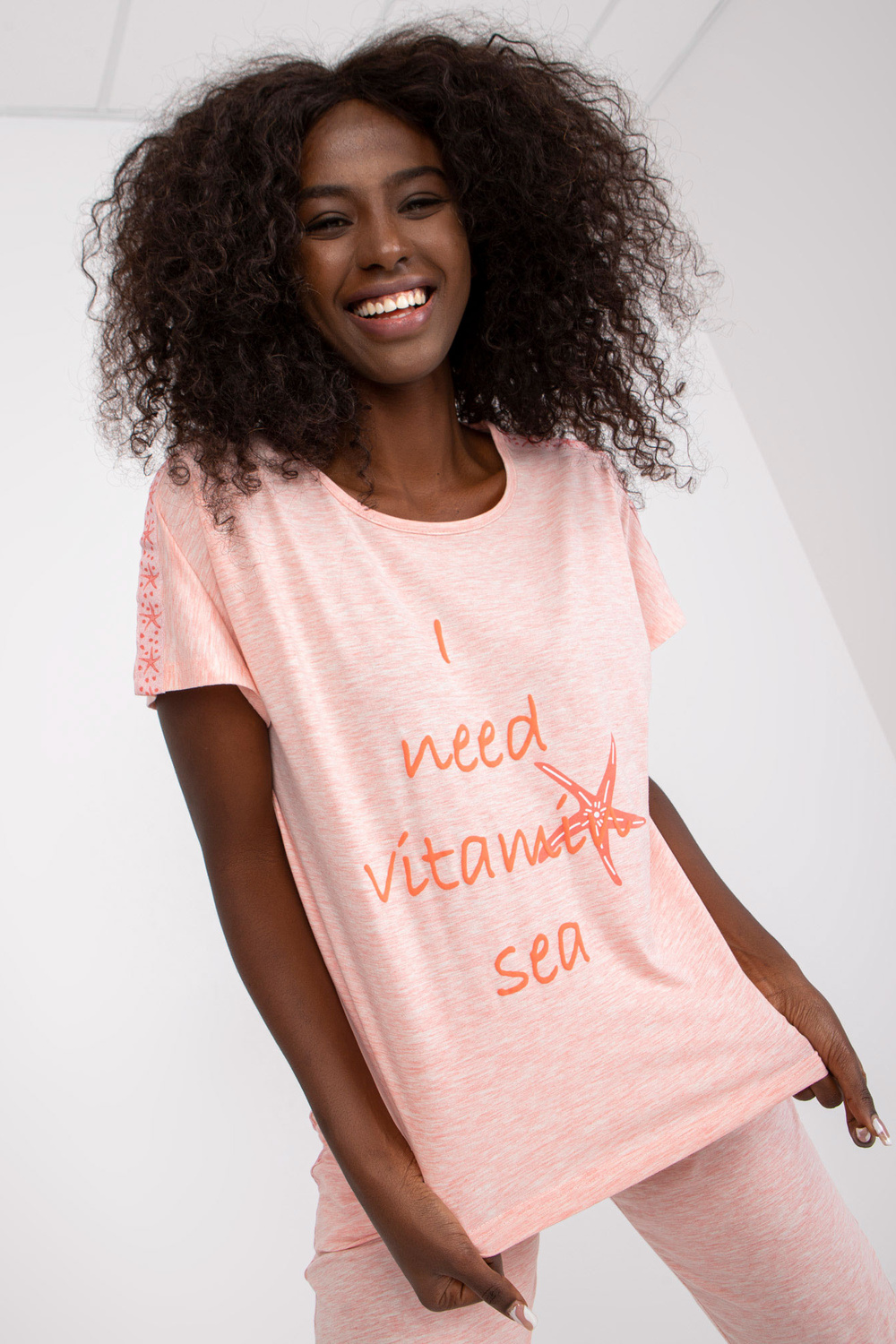 Rožinė dviejų dalių pižama trumpomis rankovėmis .