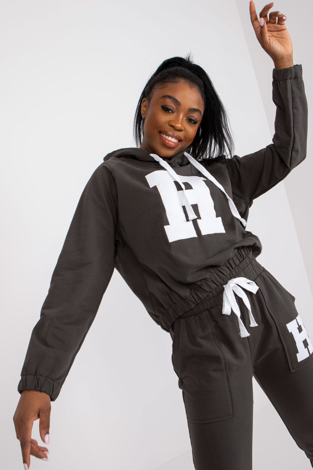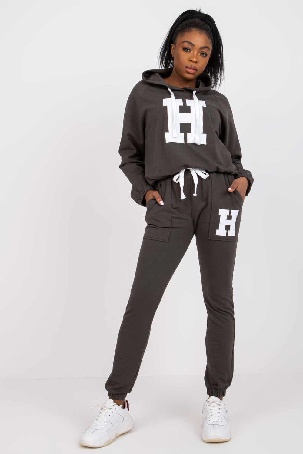 Khakis megztinių komplektas su megztiniu ir kelnėmis Natela.