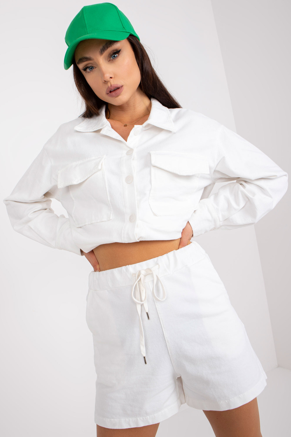 Komplekto matmenys S/M dydžiu matuojant plokščią: marškinių plotis po pažastimis - 49 cm, marškinių ilgis - 64 cm, rankovių ilgis - 60 cm, šortų plotis ties juosmeniu - 35 cm, šortų ilgis - 36 cm.