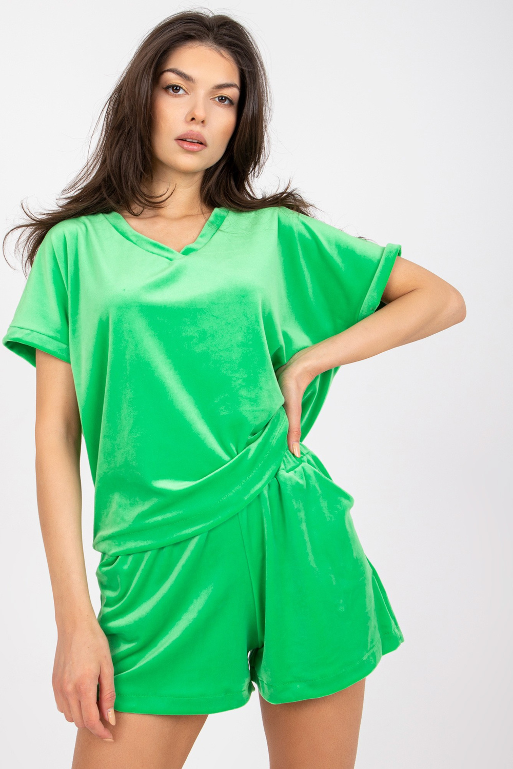 Žalias dviejų dalių veliūrinis rinkinys su trikampe iškirpte RUE PARIS .