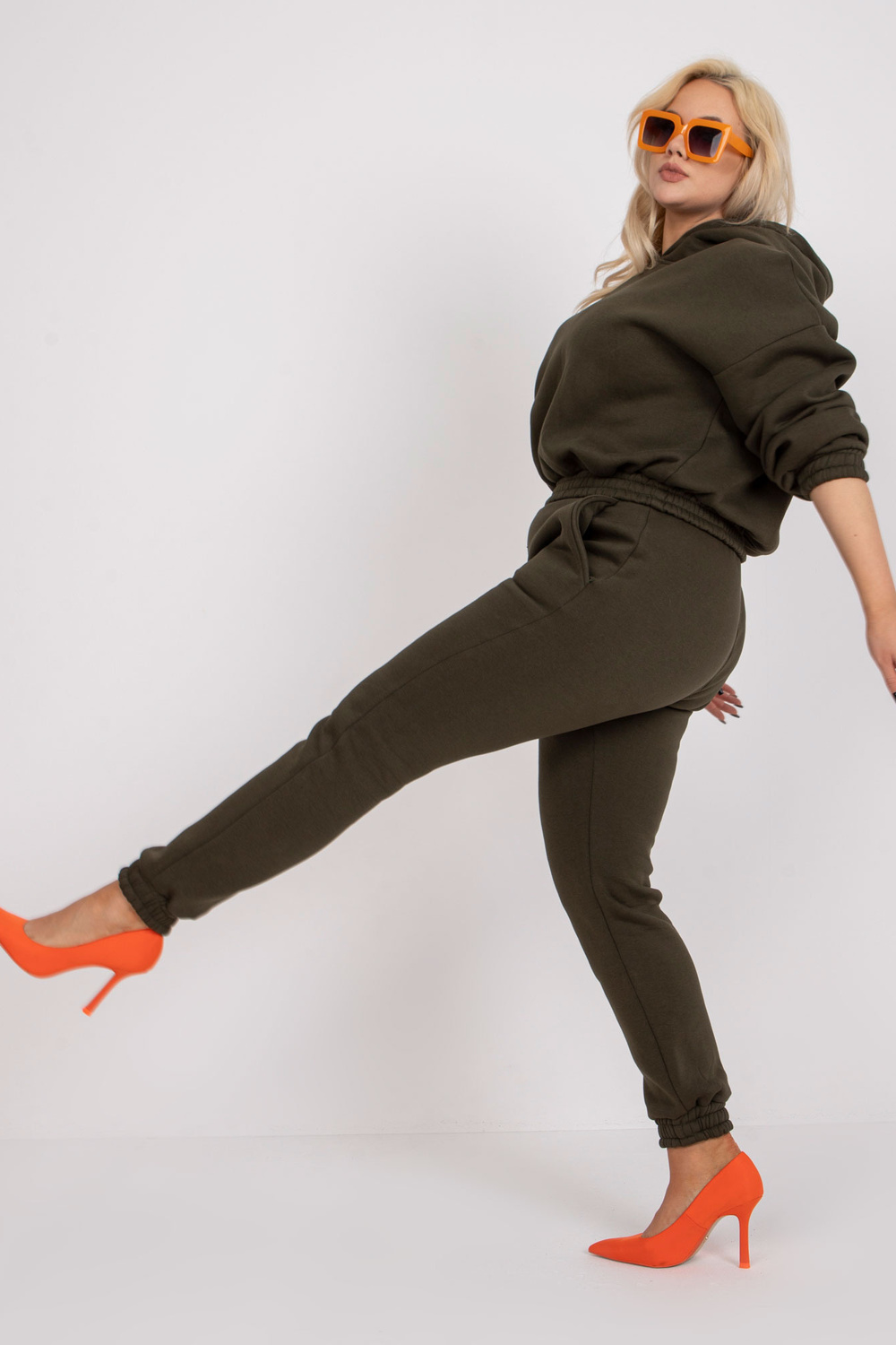 Khakis marškinėlių plius dydžio komplektas su kelnėmis .