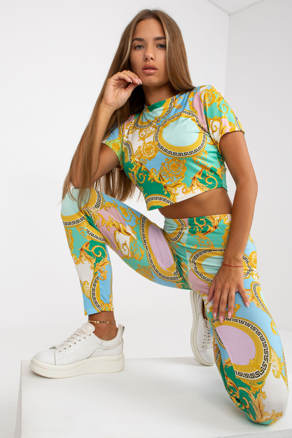 Puikiai pritaikytas laisvalaikio komplektas su trumpu viršumi . rinkinį sudaro: viršus, antblauzdžių medžiagasudėtis: 95% poliesteris, 5% elastanas skalbimo būdas: skalbimas mašinoje 30°C Gaminio kodas: DHJ-KMPL-15832.88 dominuojantis raštas: spausdinimas Stilius: kasdienis Proga: kasdienis, miestas, vakarėlis,