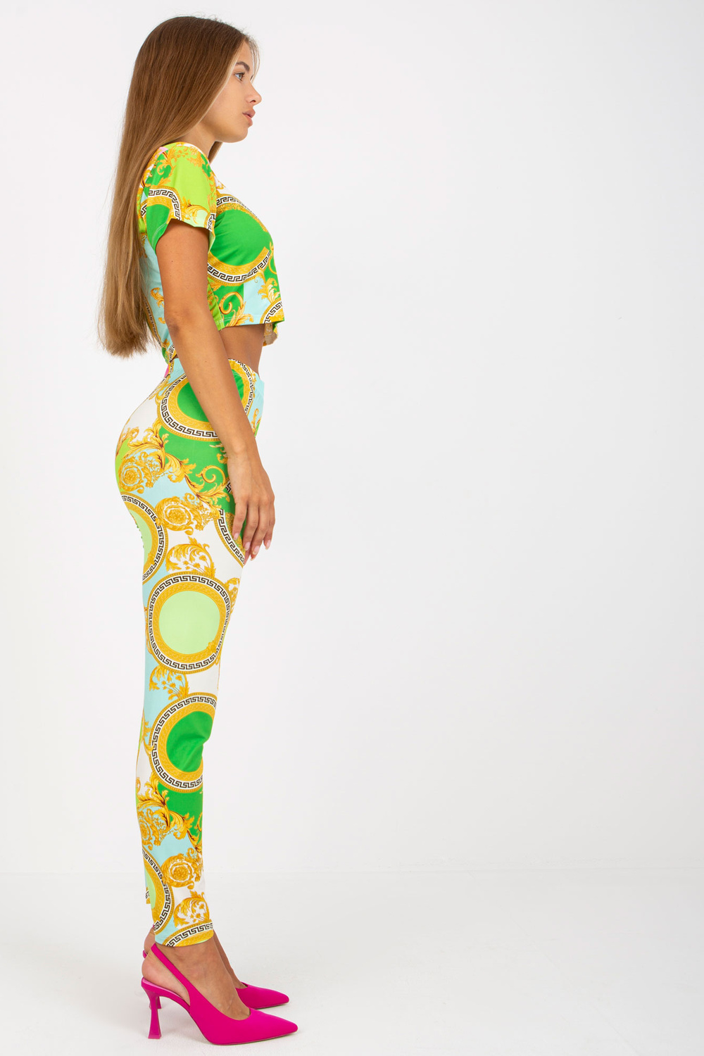 Šviesiai žalios spalvos dviejų dalių laisvalaikio komplektas su antblauzdžiais.