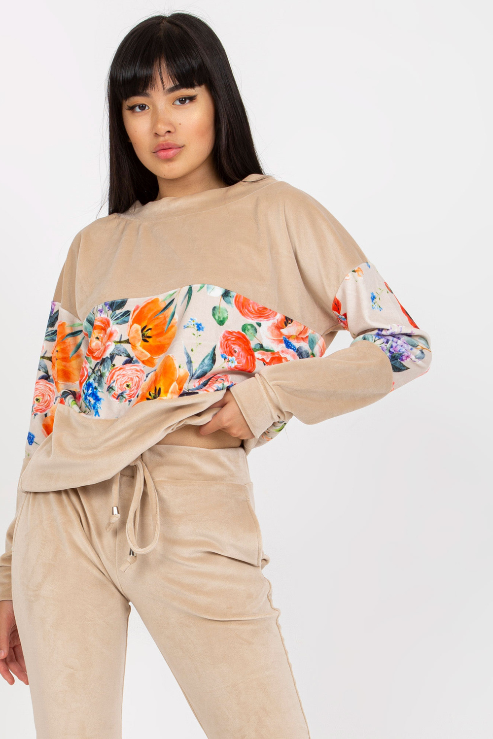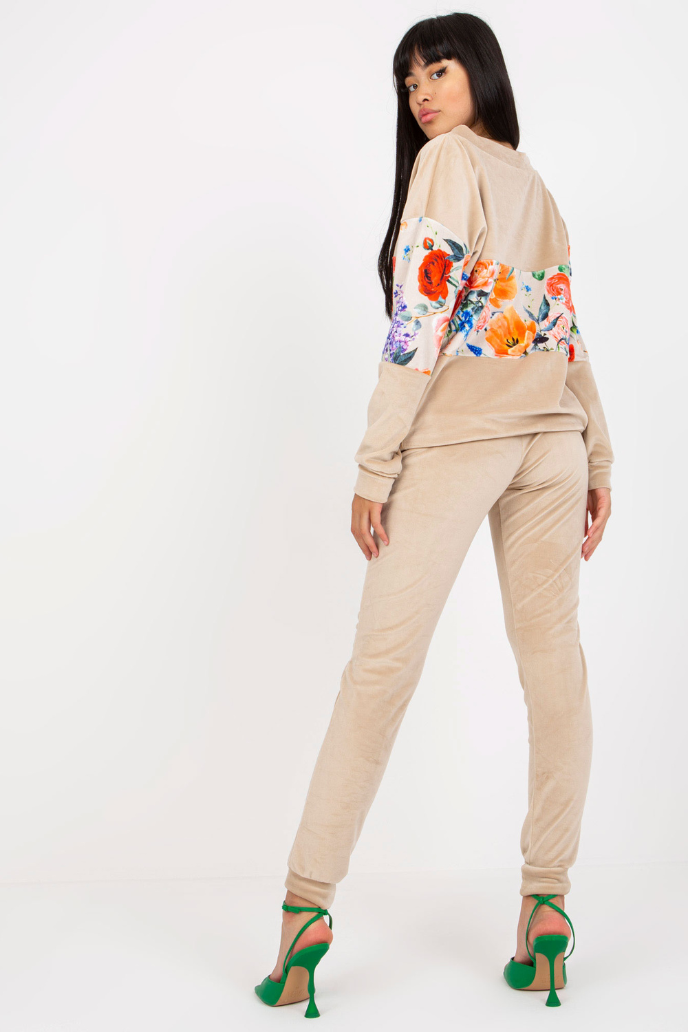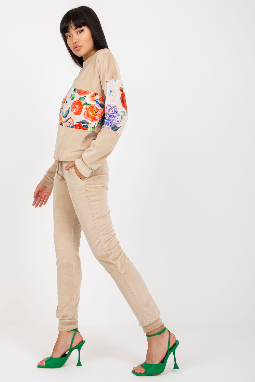 Beigetinis dviejų dalių veliūrinis rinkinys su RUE PARIS spauda .