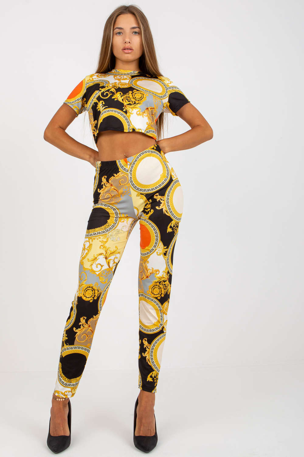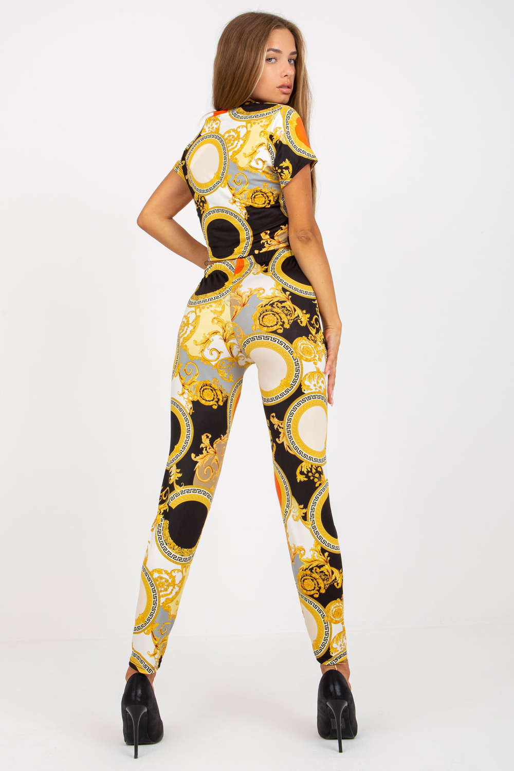Juodas, dviejų dalių laisvalaikio komplektas su spaudiniais. rinkinį sudaro: viršus, antblauzdžių medžiagasudėtis: 95% poliesteris, 5% elastanas skalbimo būdas: skalbimas mašinoje 30°C Gaminio kodas: DHJ-KMPL-15832.88 dominuojantis raštas: spausdinimas Stilius: kasdienis Proga: kasdienis, miestas, P