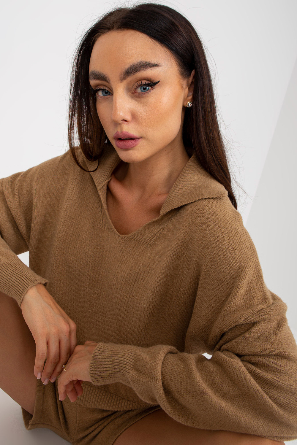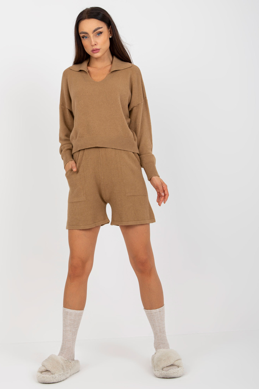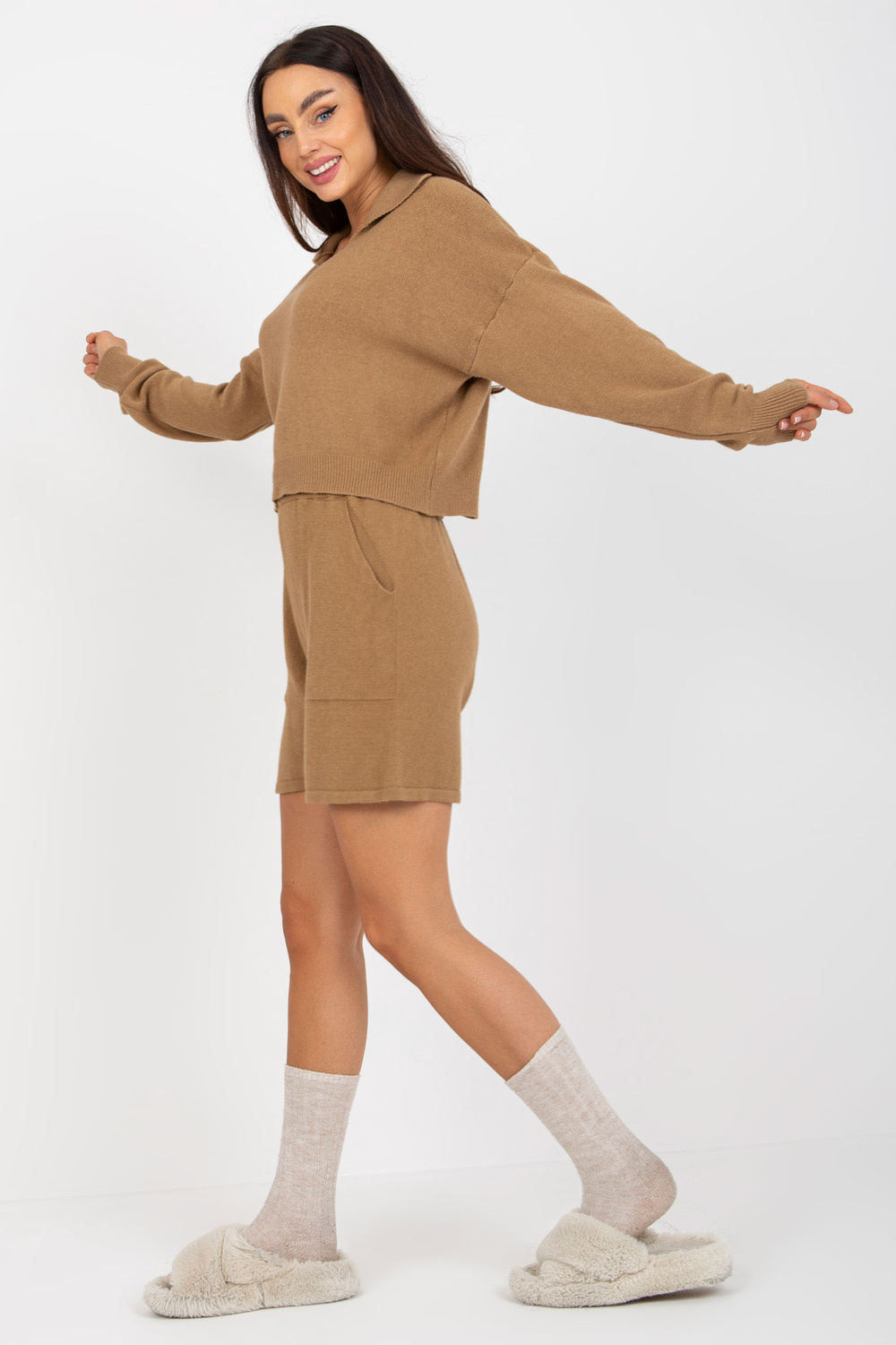 Camel megztas laisvalaikio komplektas su šortais. Prekės kodas: EM-KMPL-20375.23 dominuojantis raštas: glotnus Stilius: laisvalaikis: laisvalaikis, į miestą, pasivaikščioti, į darbą Modelis dėvi vieno dydžio dydį. Modelio matmenys: aukštis 171 cm, krūtinė 84 cm, juosmuo 60