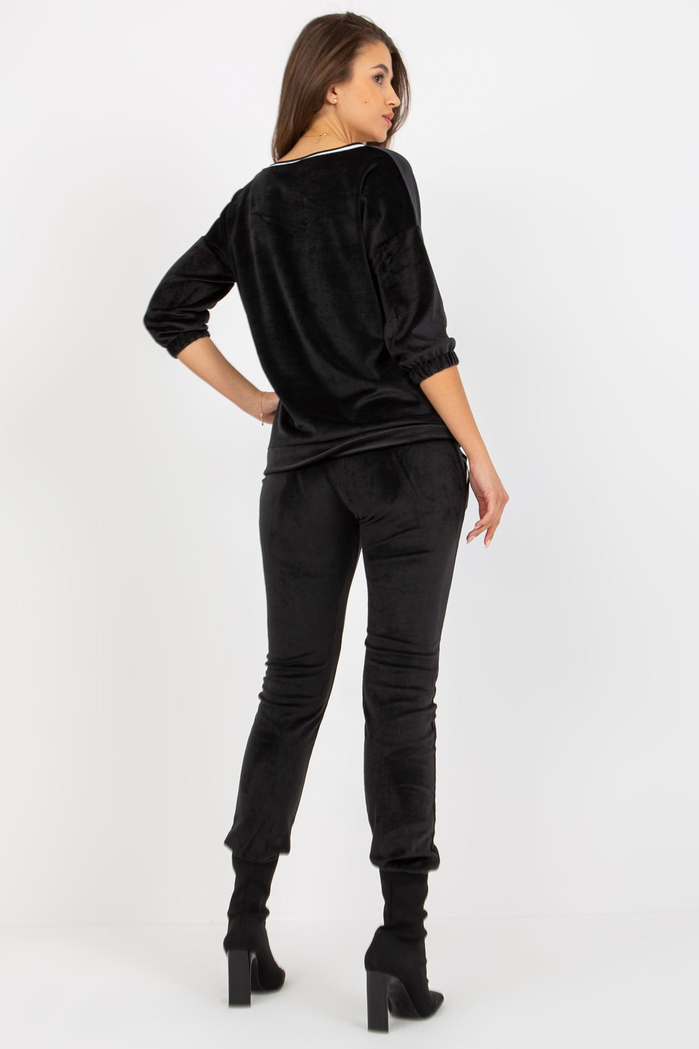 Schwarzes zweiteiliges Velours-Set mit V-Ausschnitt.
