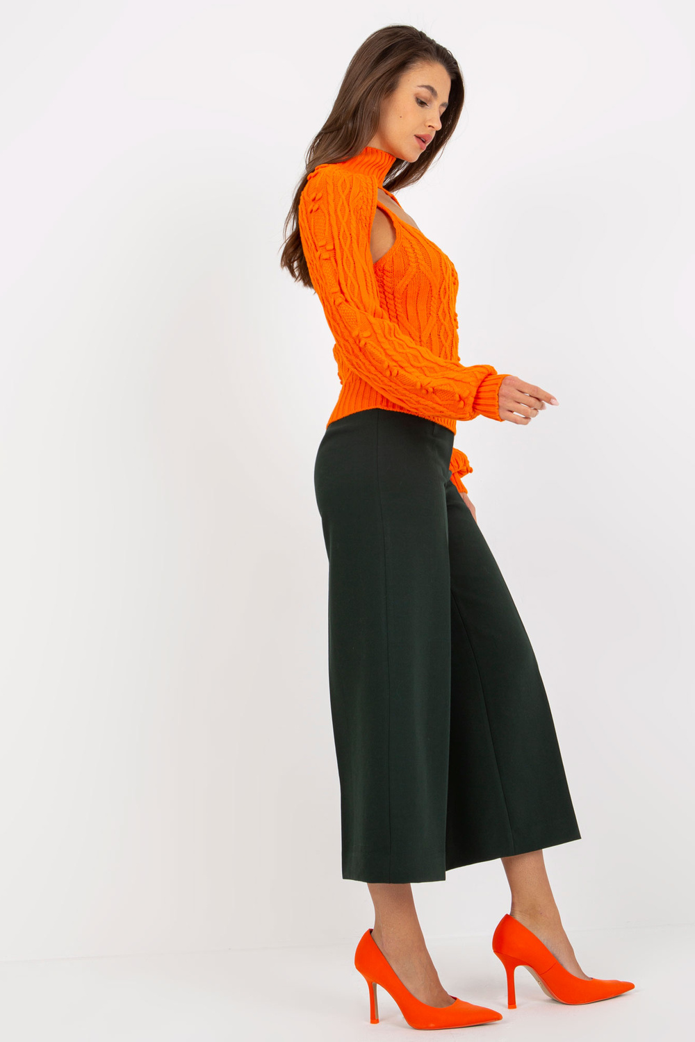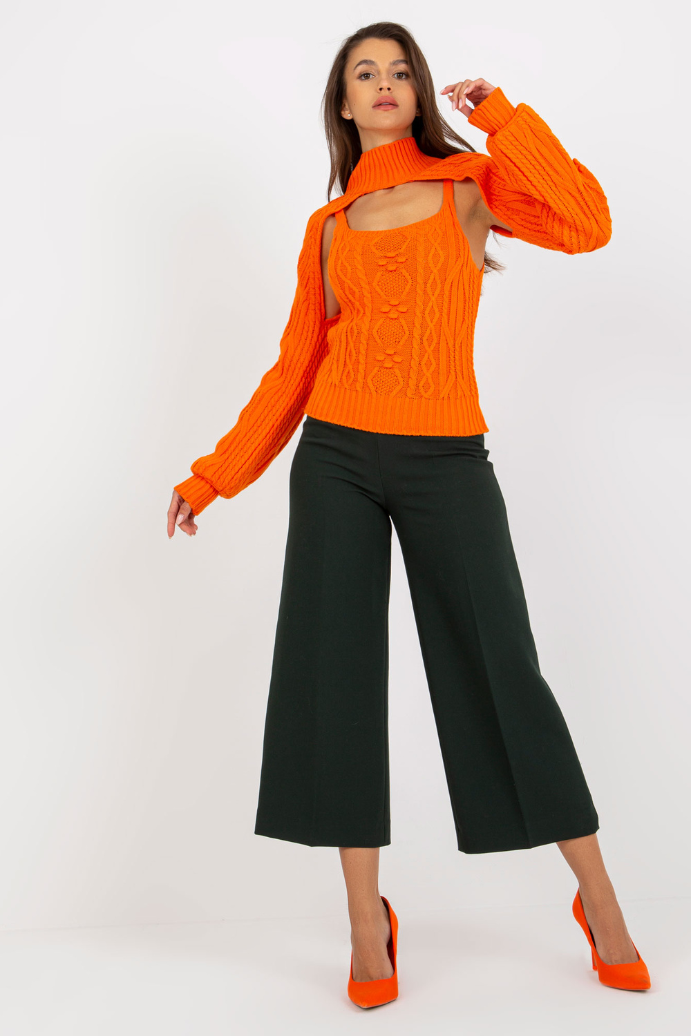 Orangefarbenes Set mit einem kurzen Pullover und einem Striccoberteil.