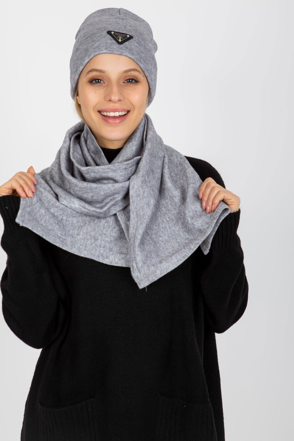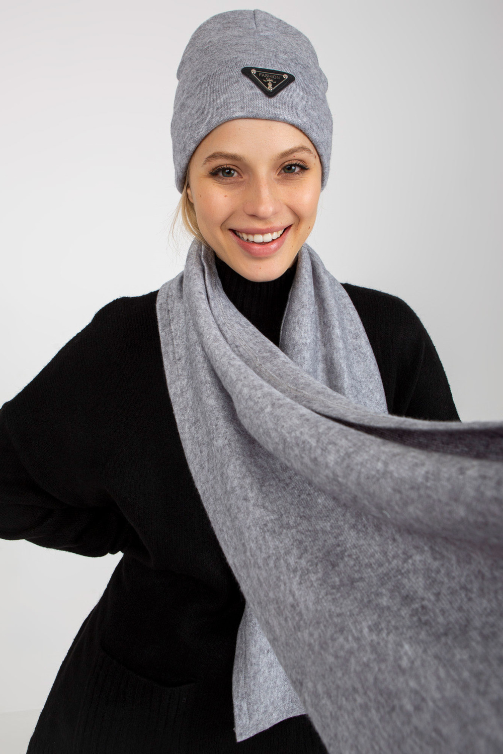 Pilkas moteriškas žiemos komplektas su skara. Prekės kodas: LK-KMPL-509140.47 dominuojantis raštas: lygus