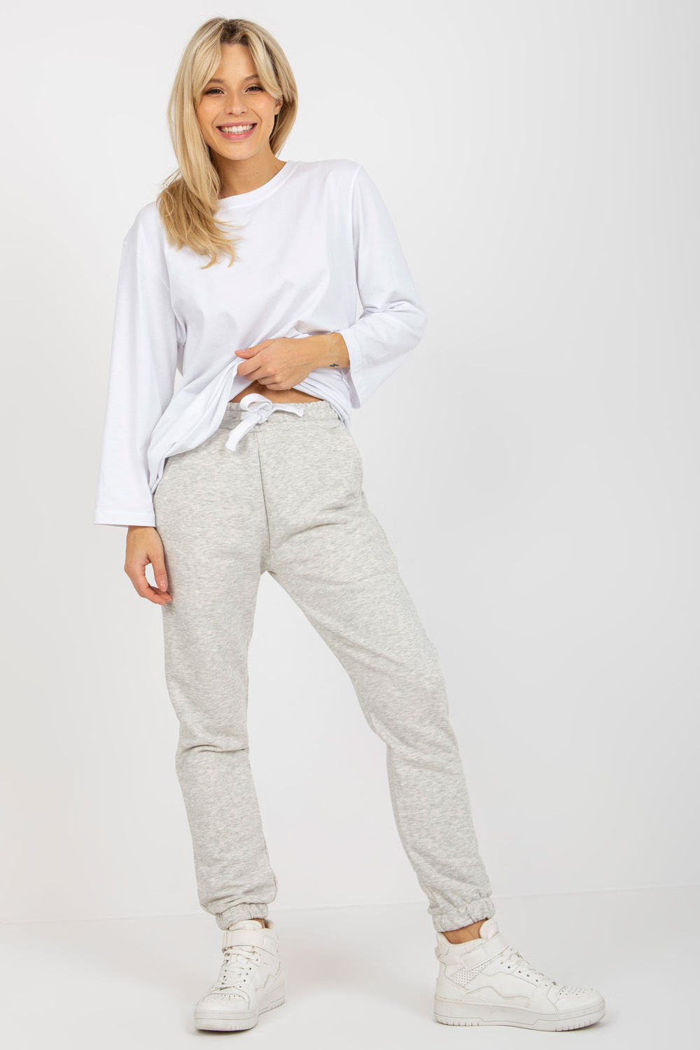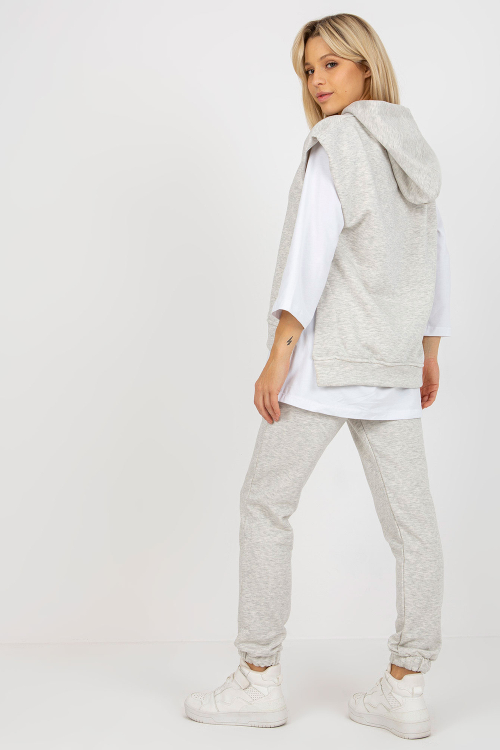 Šviesiai pilkas trijų dalių laisvalaikio komplektas su megztiniais.