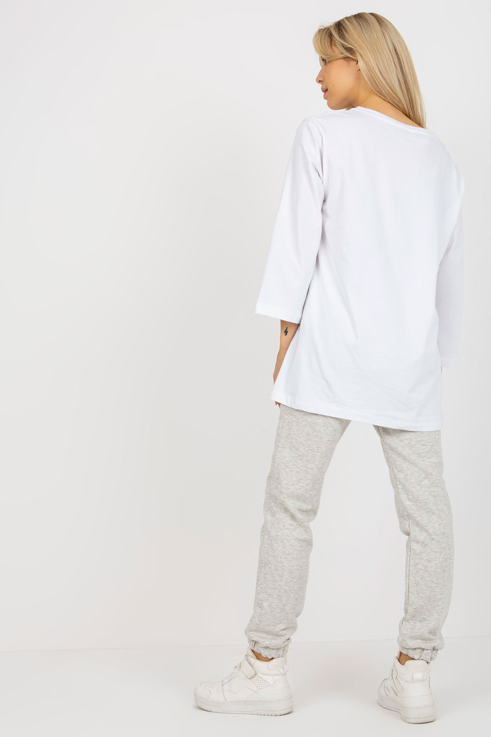 Komplekto matmenys vieno dydžio matuojant plokščią: megztinio plotis po pažastimis - 55 cm, megztinio ilgis - 65 cm, palaidinės plotis po pažastimis - 55 cm, rankovių ilgis - 52 cm, palaidinės ilgis - 75 cm, kelnių plotis ties juosmeniu - 34 cm, būklės aukštis - 30 cm, kelnių ilgis - 95 cm.