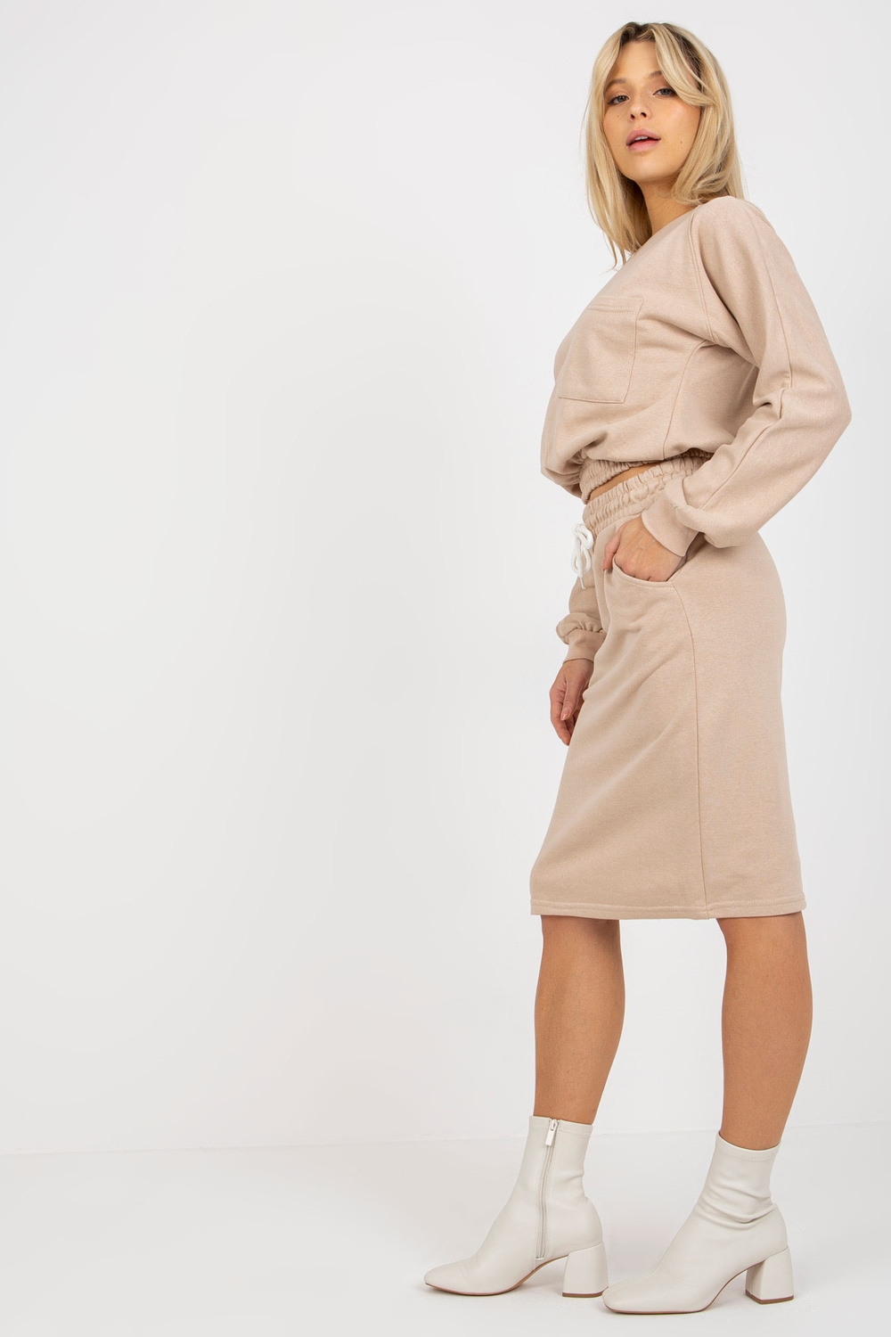 Smėlio spalvos laisvalaikio bazinis komplektas su sijonu