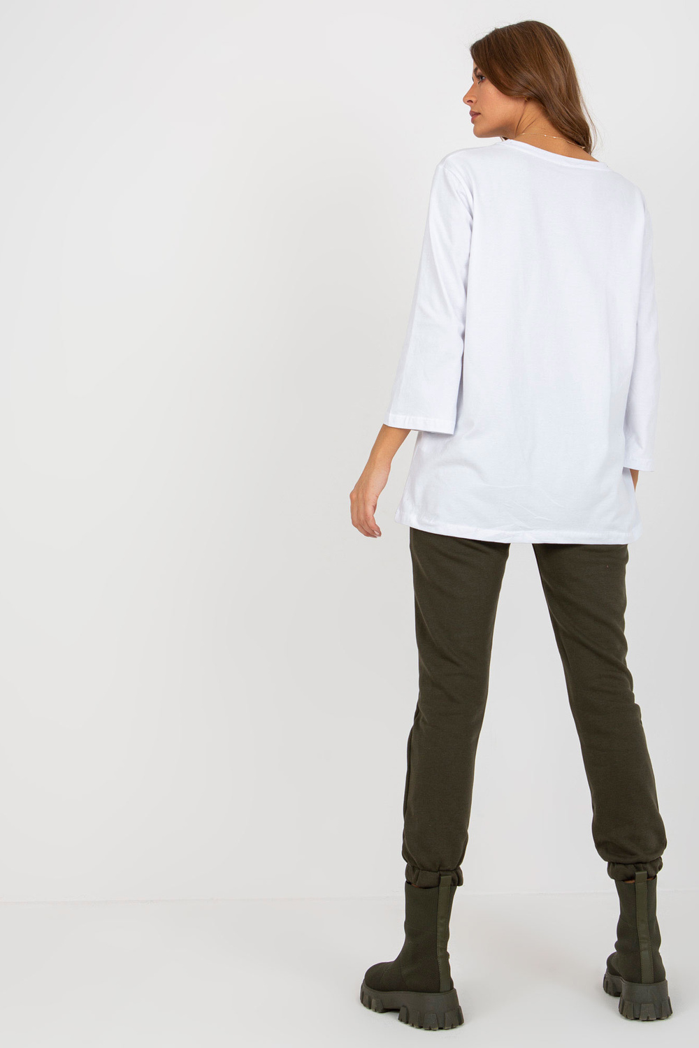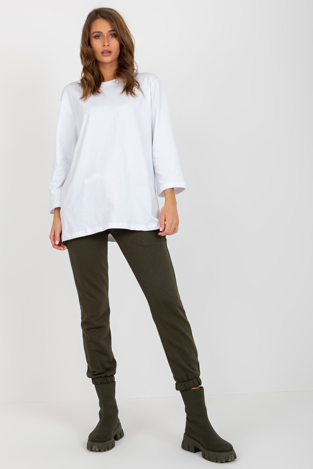 Komplekto matmenys vieno dydžio matuojant plokščią: megztinio plotis po pažastimis - 55 cm, megztinio ilgis - 65 cm, palaidinės plotis po pažastimis - 55 cm, rankovių ilgis - 52 cm, palaidinės ilgis - 75 cm, kelnių plotis ties juosmeniu - 34 cm, būklės aukštis - 30 cm, kelnių ilgis - 95 cm.