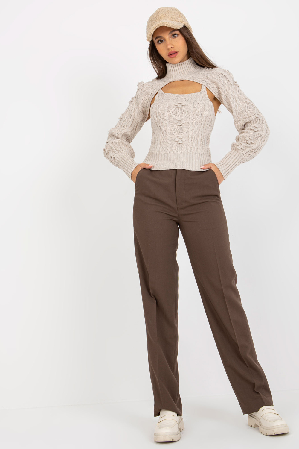 Hellbeiges Set mit einem kurzen Pullover und einem Oberteil mit Zöpfen.