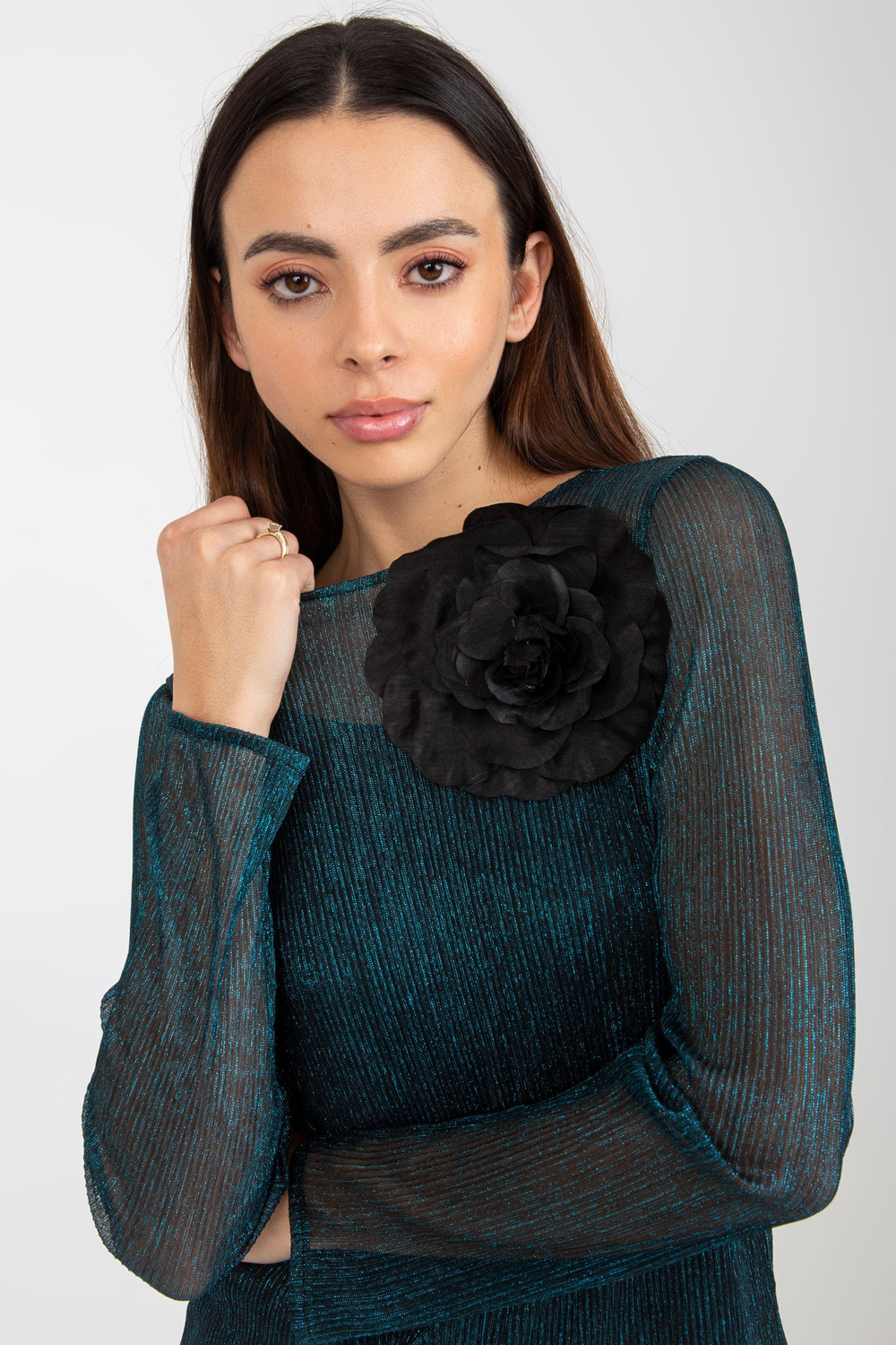 Jūra ir juoda blizgi iškilminga palaidinė su viršutine dalimi.