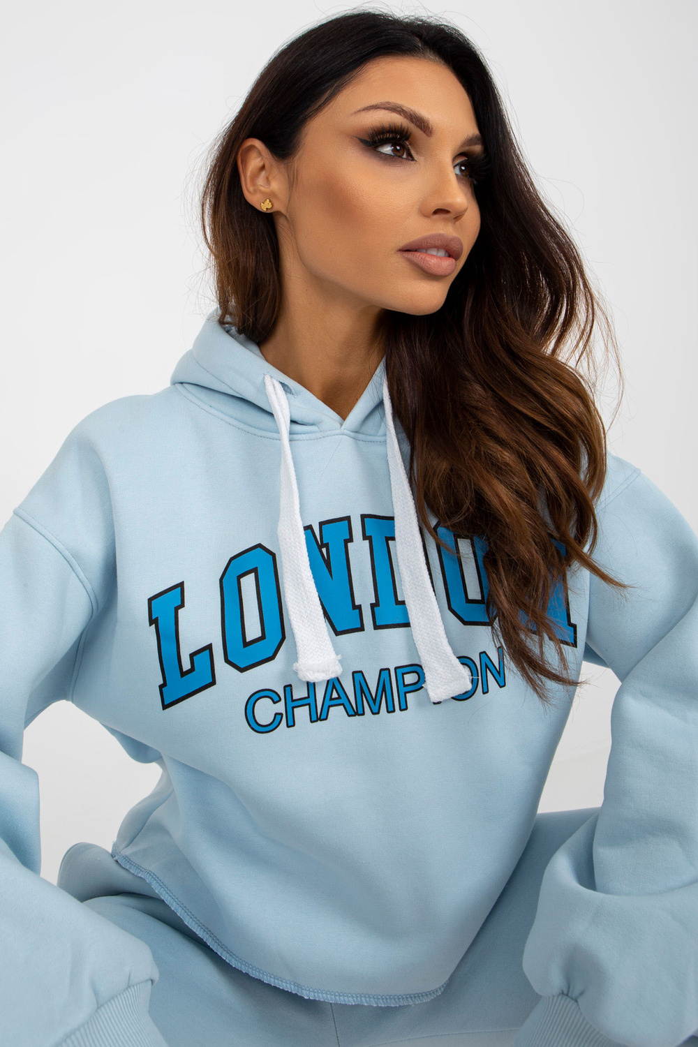 Šviesiai mėlynos ir mėlynos spalvos sportinio kostiumo komplektas su Laraina raštu.