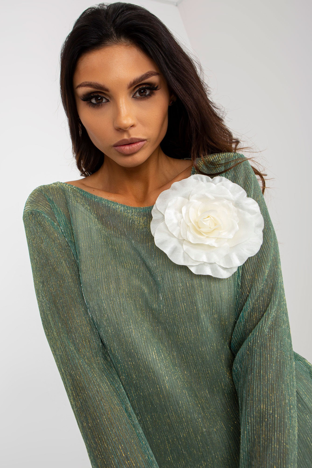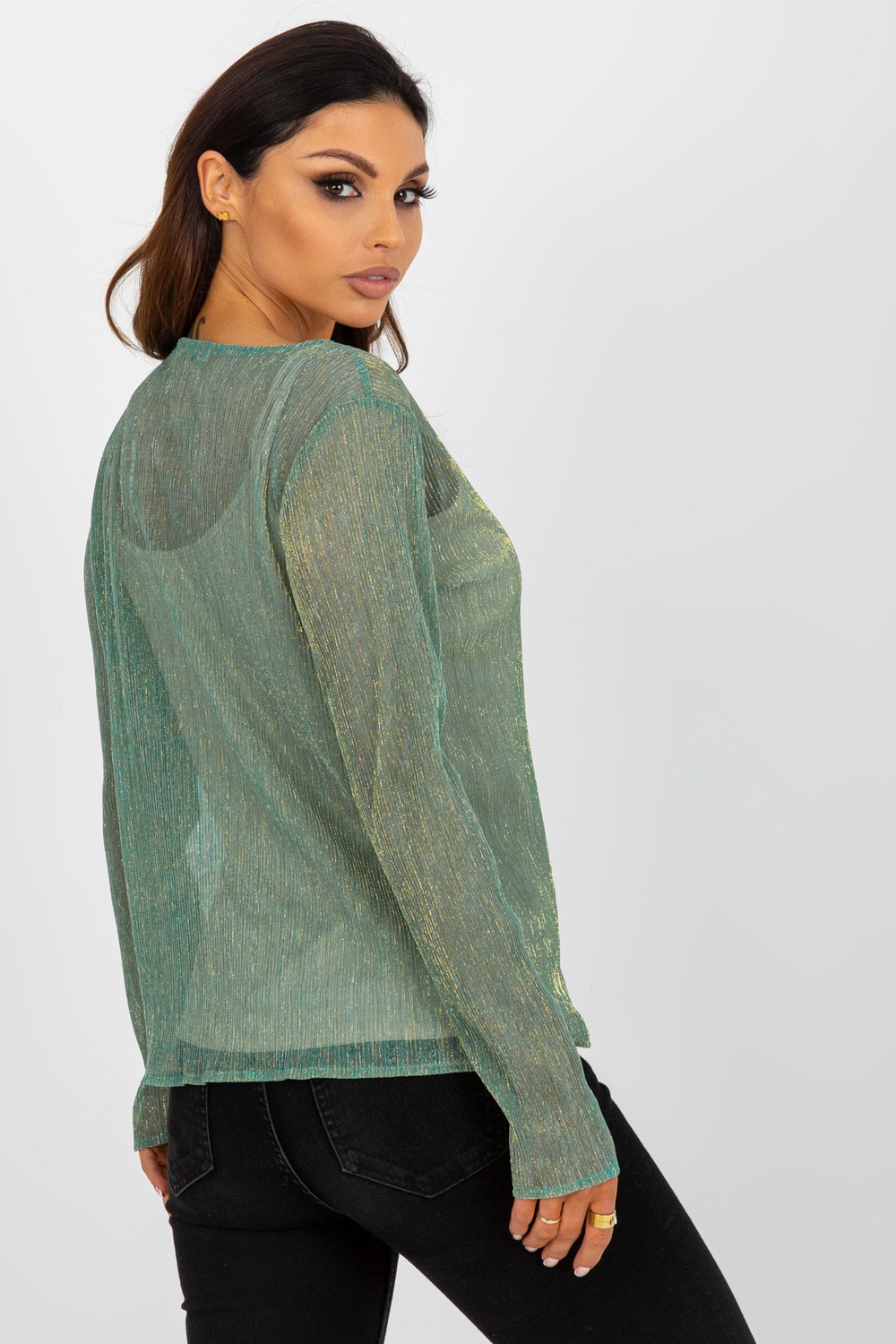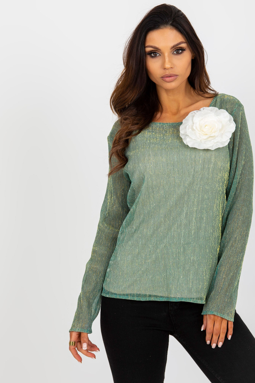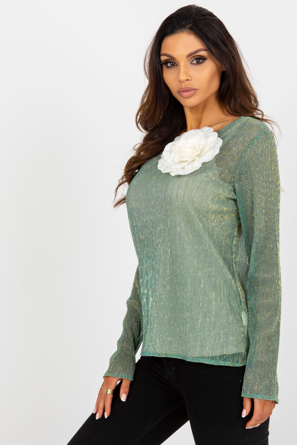 Šviesiai žalia ir smėlio spalvos blizganti iškilminga palaidinė su viršutine dalimi.