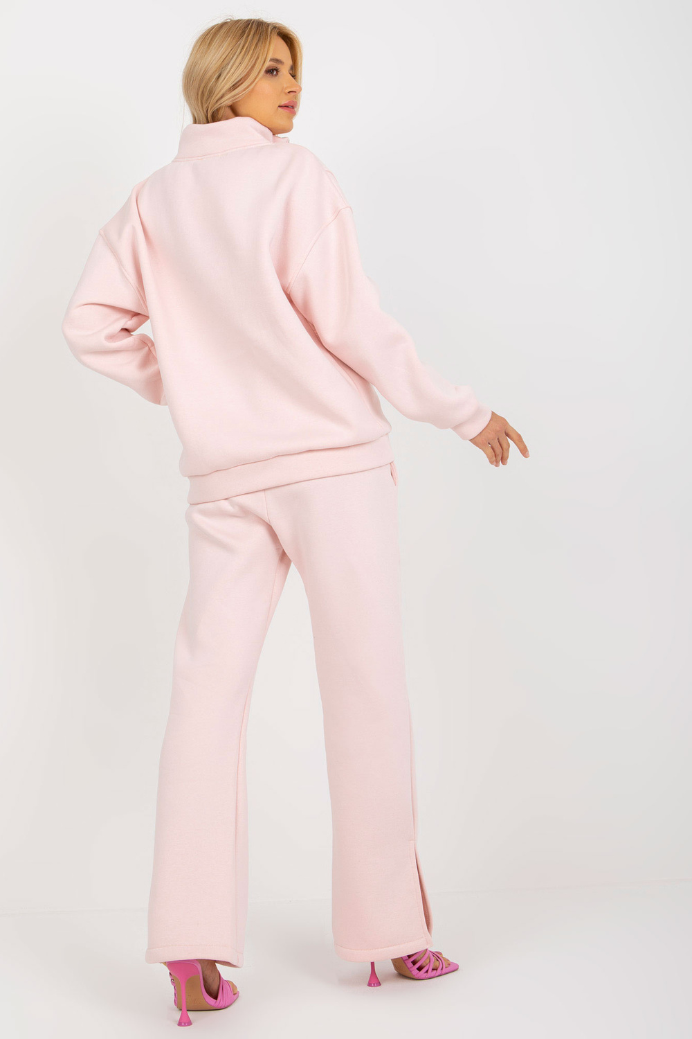 Blyškiai rožinis trijų dalių sportinio kostiumo komplektas su viršutine dalimi.