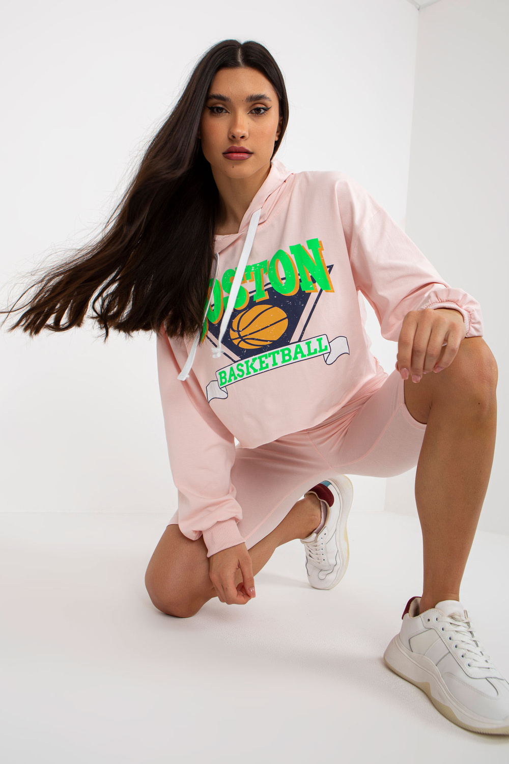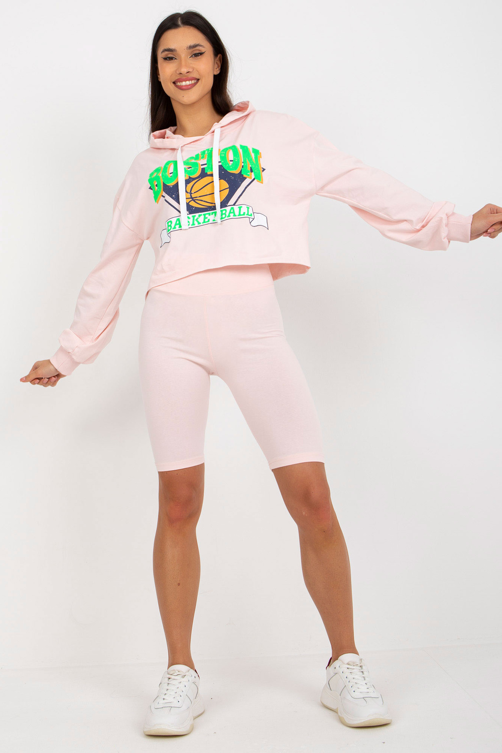 Šviesiai rožinis laisvalaikio komplektas su dviratininkų šortais
