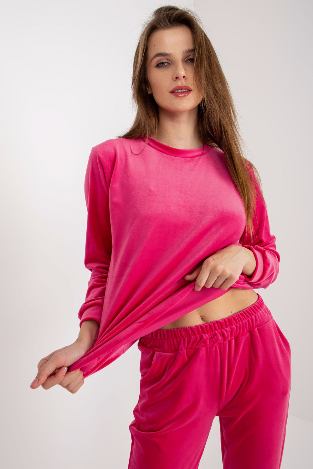 Fuksijos spalvos moteriškas veliūrinis rinkinys su megztiniu Brenda RUE PARIS.