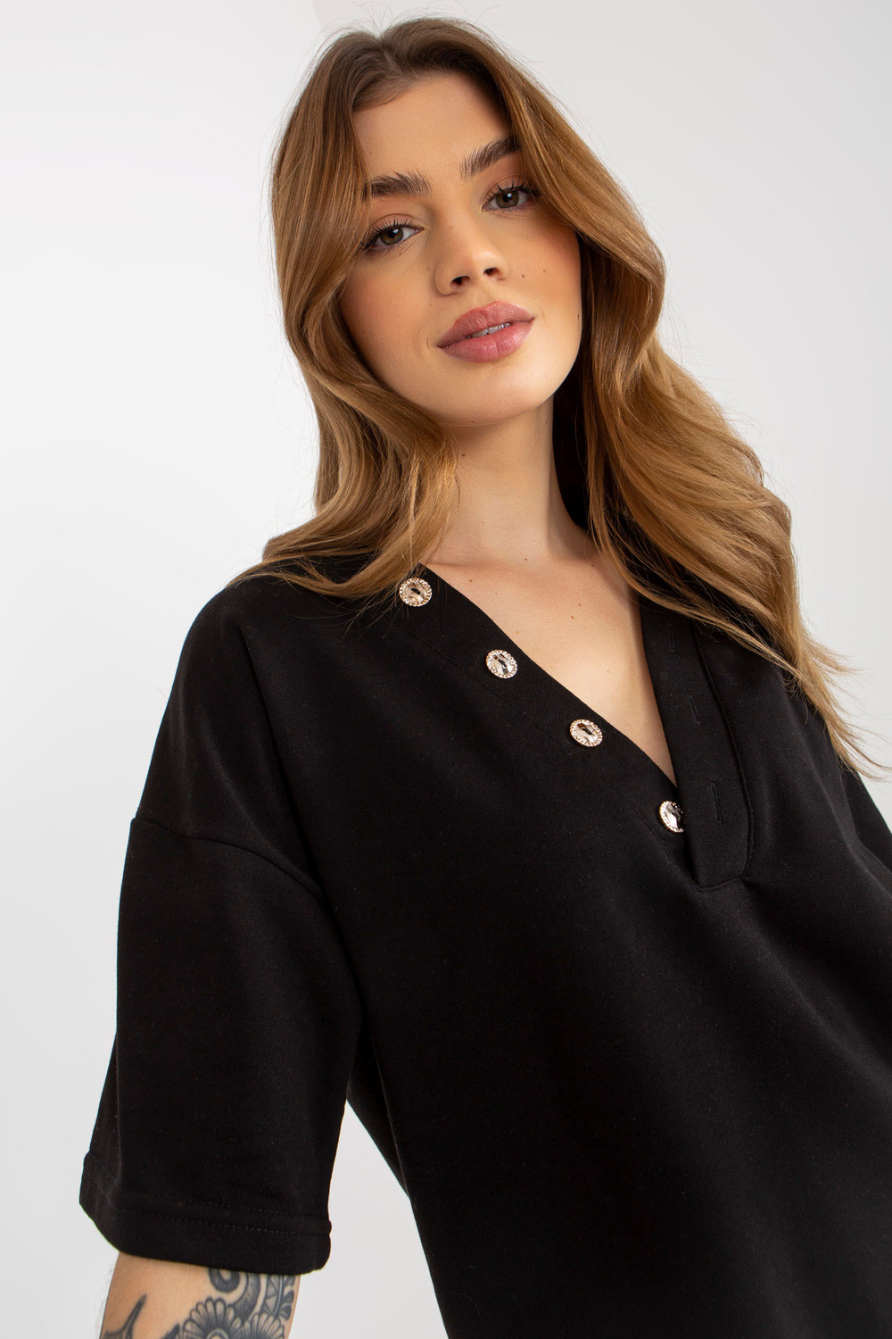 Juodų megztinių vasaros komplektas su palaidine su sagomis