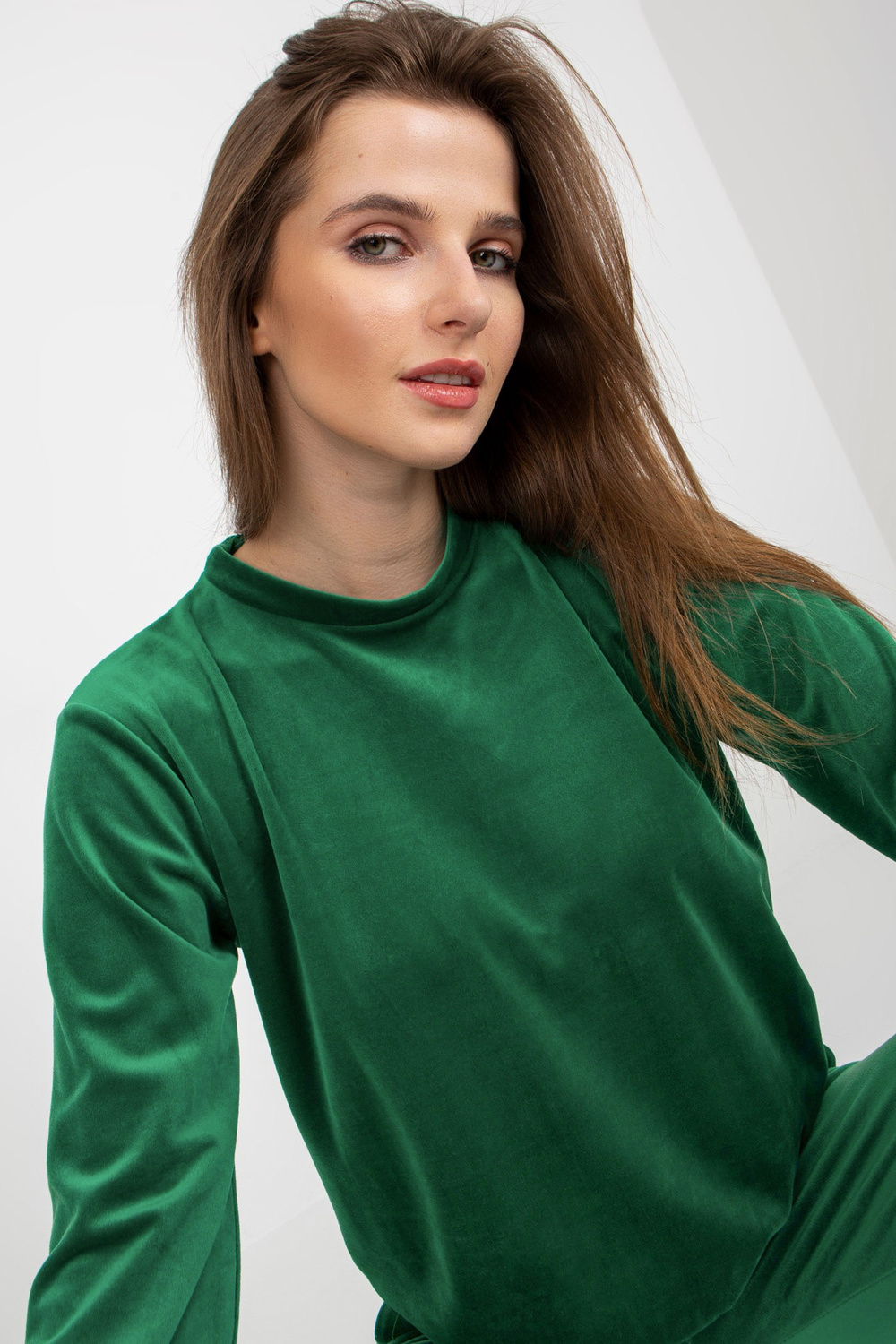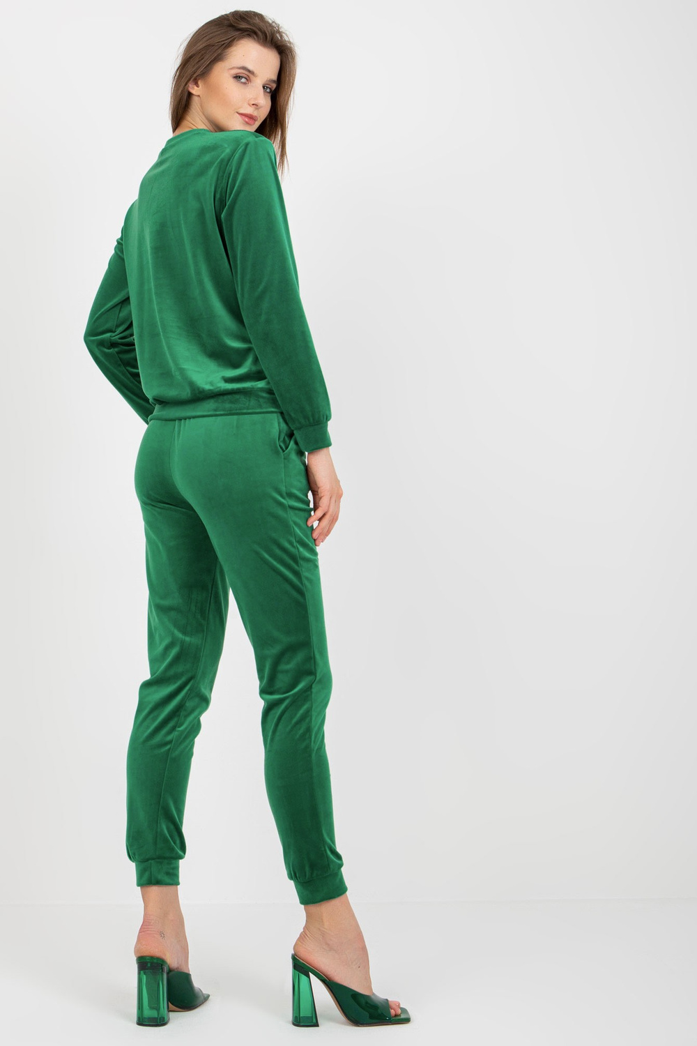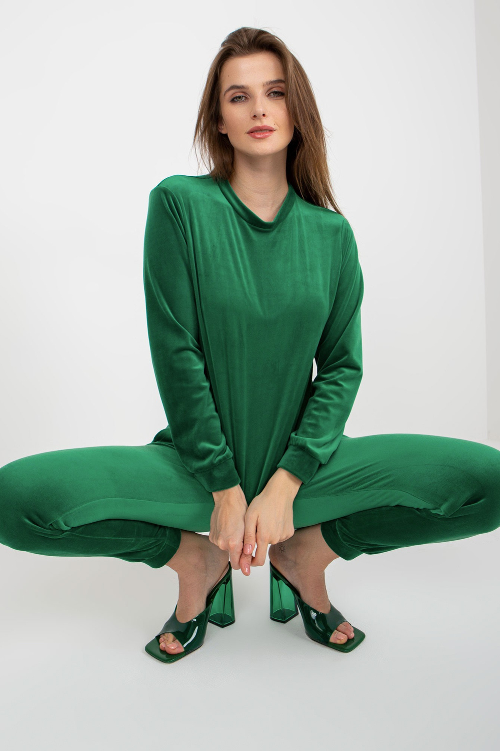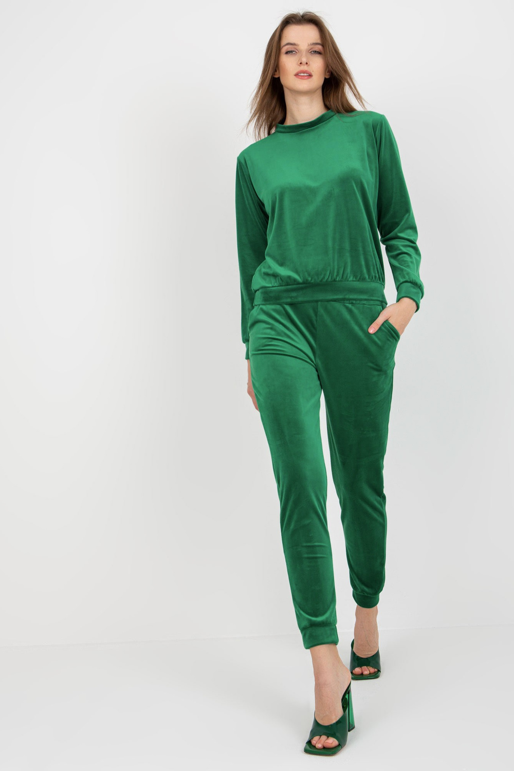 Žalias moteriškas veliūrinis komplektas su megztiniu Brenda RUE PARIS.