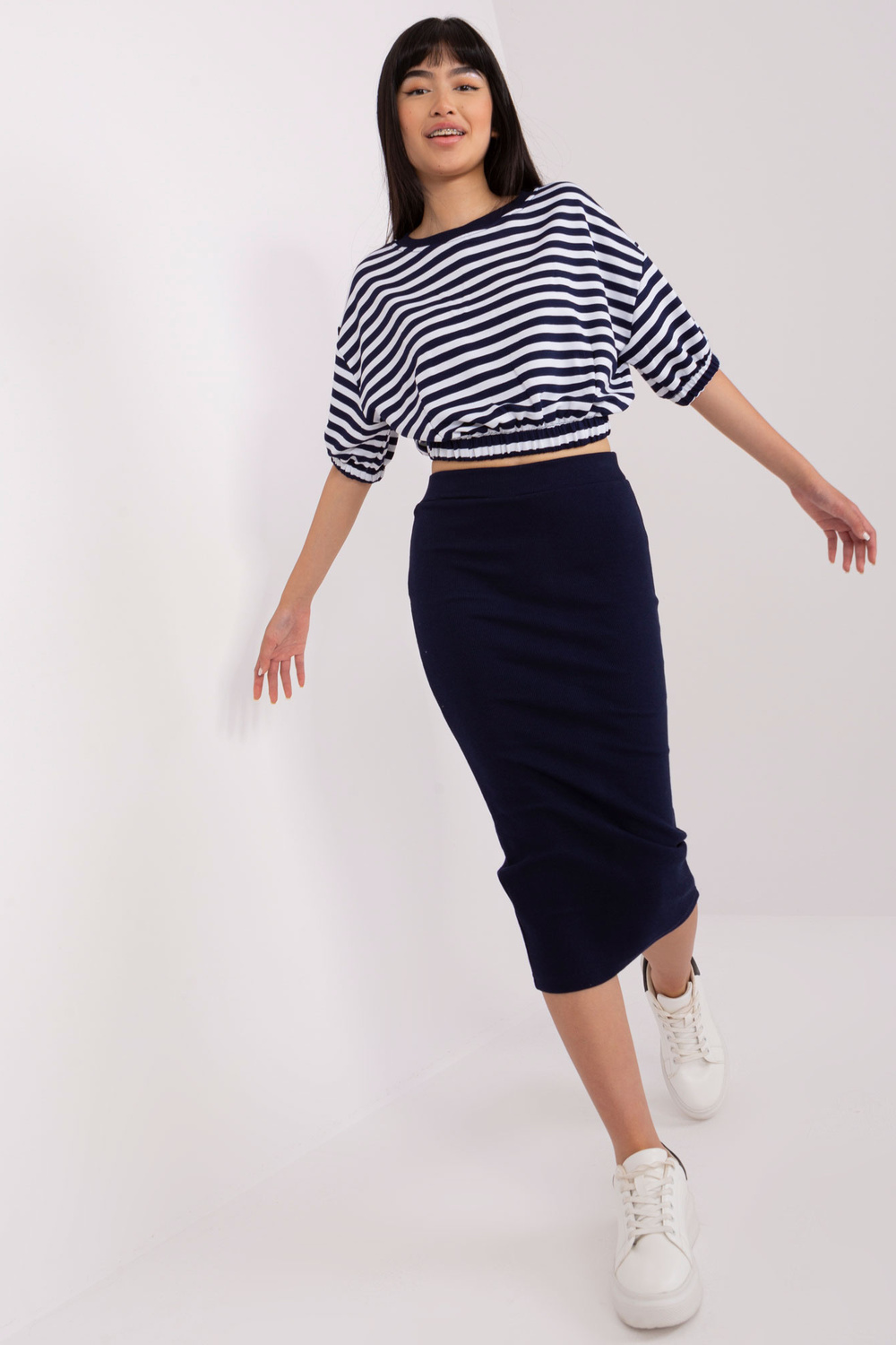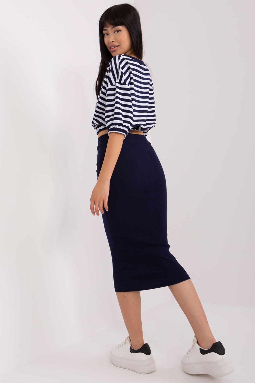 Komplekto matmenys vieno dydžio, matuojamas plokščias: palaidinės plotis po apačia rankos - 55 cm, palaidinės ilgis - 47 cm, sijono plotis ties juosmeniu - 33 cm, sijono ilgis - 74 cm.